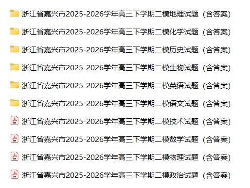 >【高三试卷】浙江省嘉兴市2025-2026学年高三下学期二模(全科)