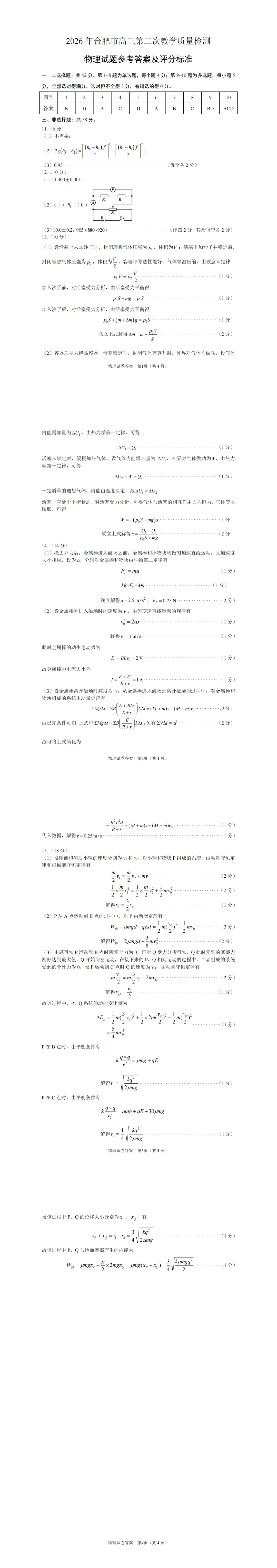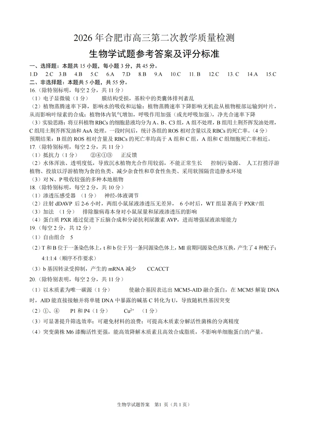 >2026合肥高三二模试卷以及答案更新