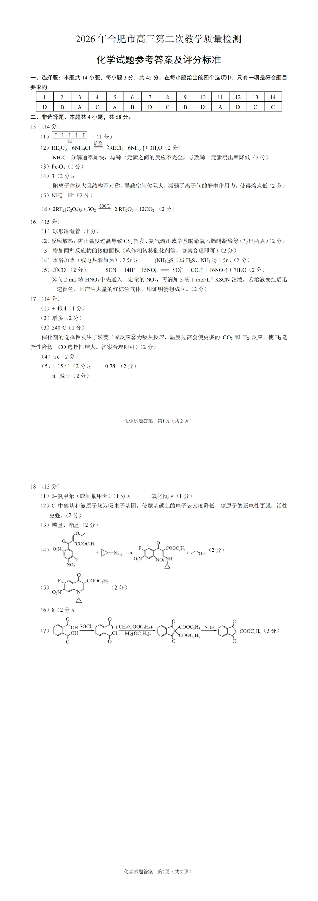 2026合肥高三二模试卷以及答案更新