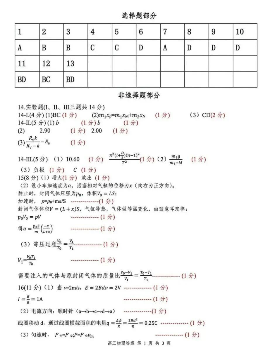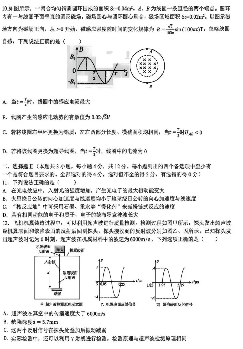 2026届浙江天域全国名校协作体高三下学期二模物理试题及答案