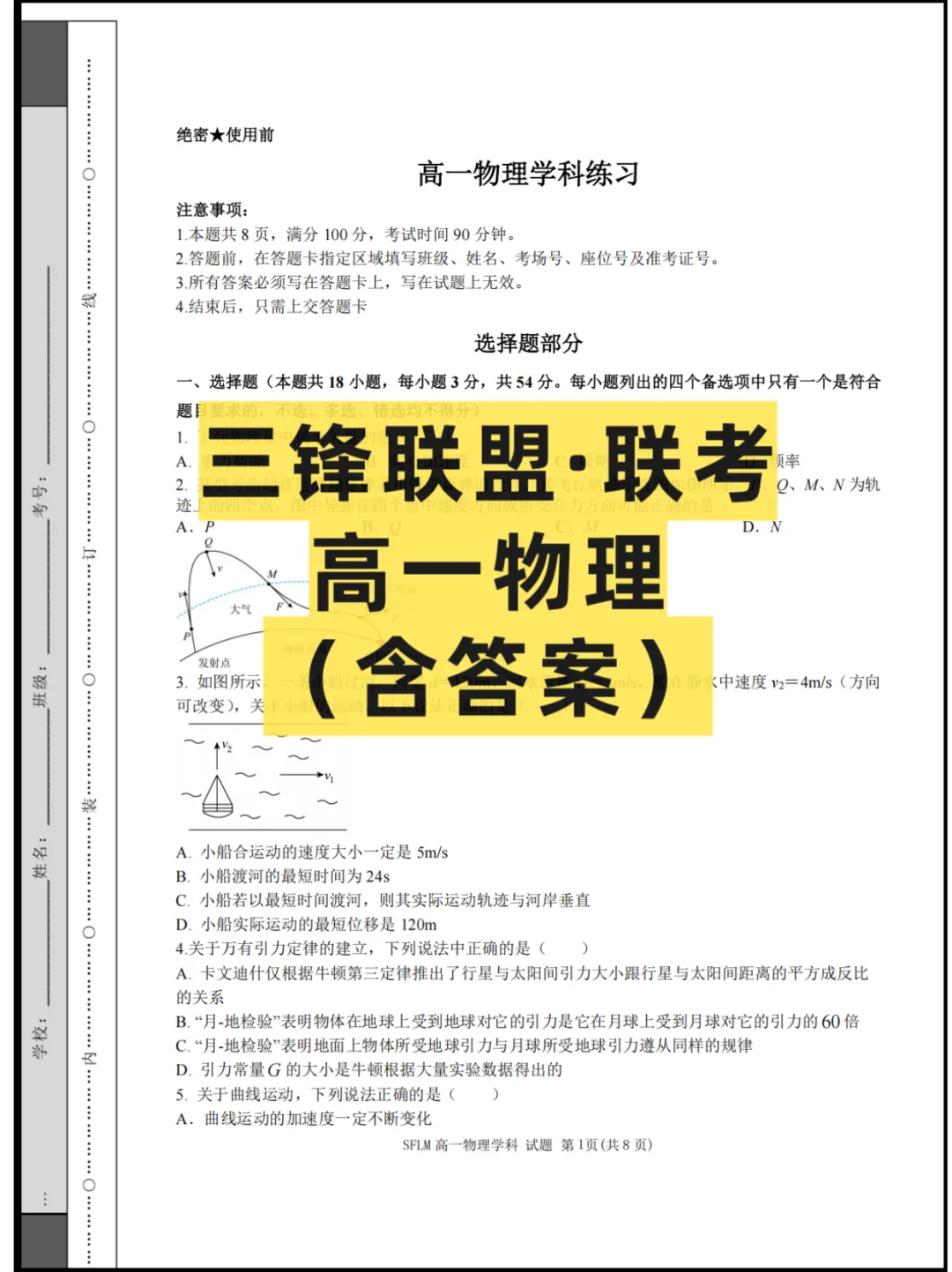 昆山中学高一实验班期中测试试卷:物理 | 各位家长请查阅!