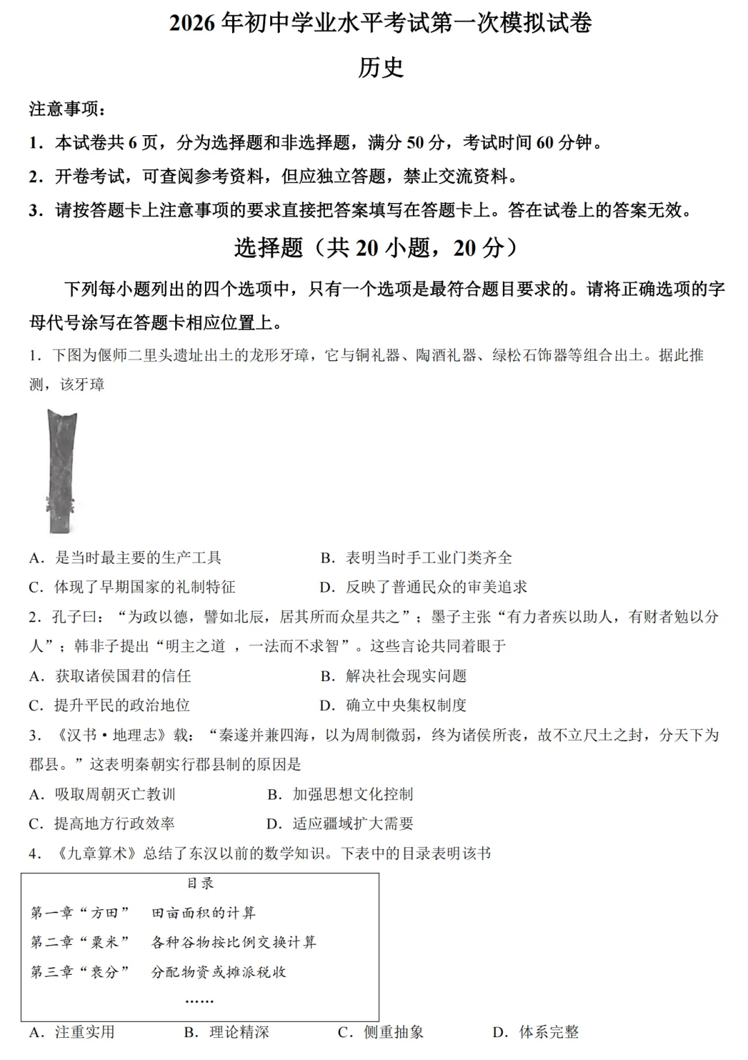 初中试卷: