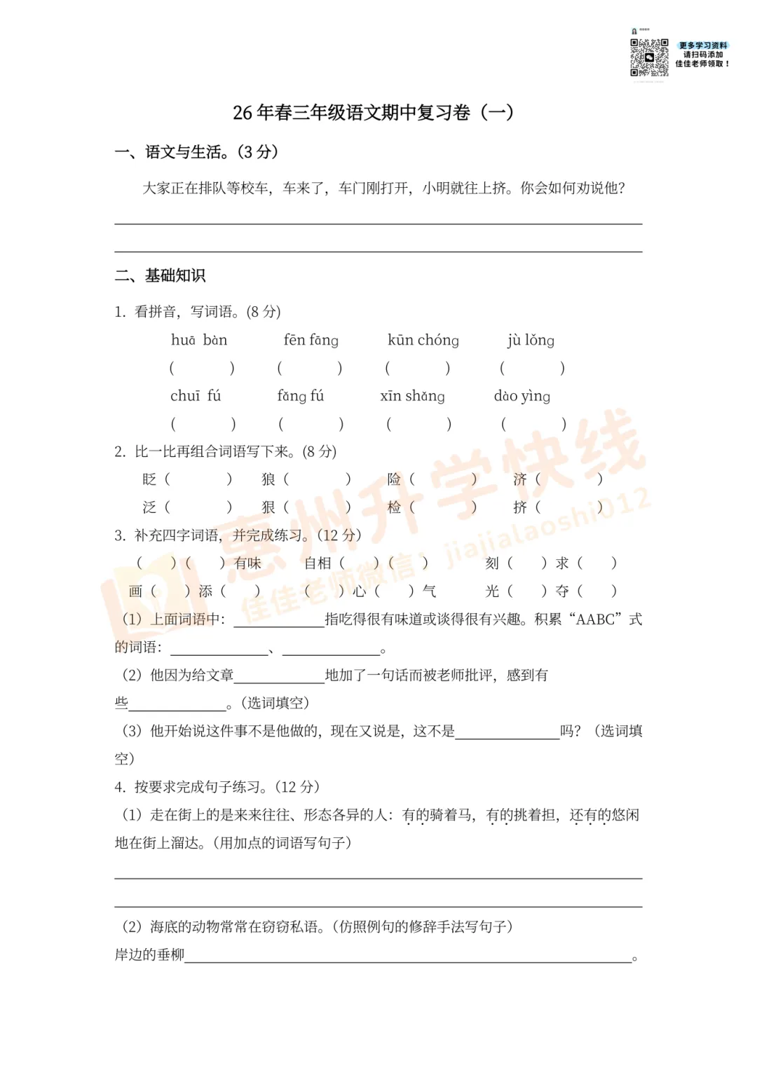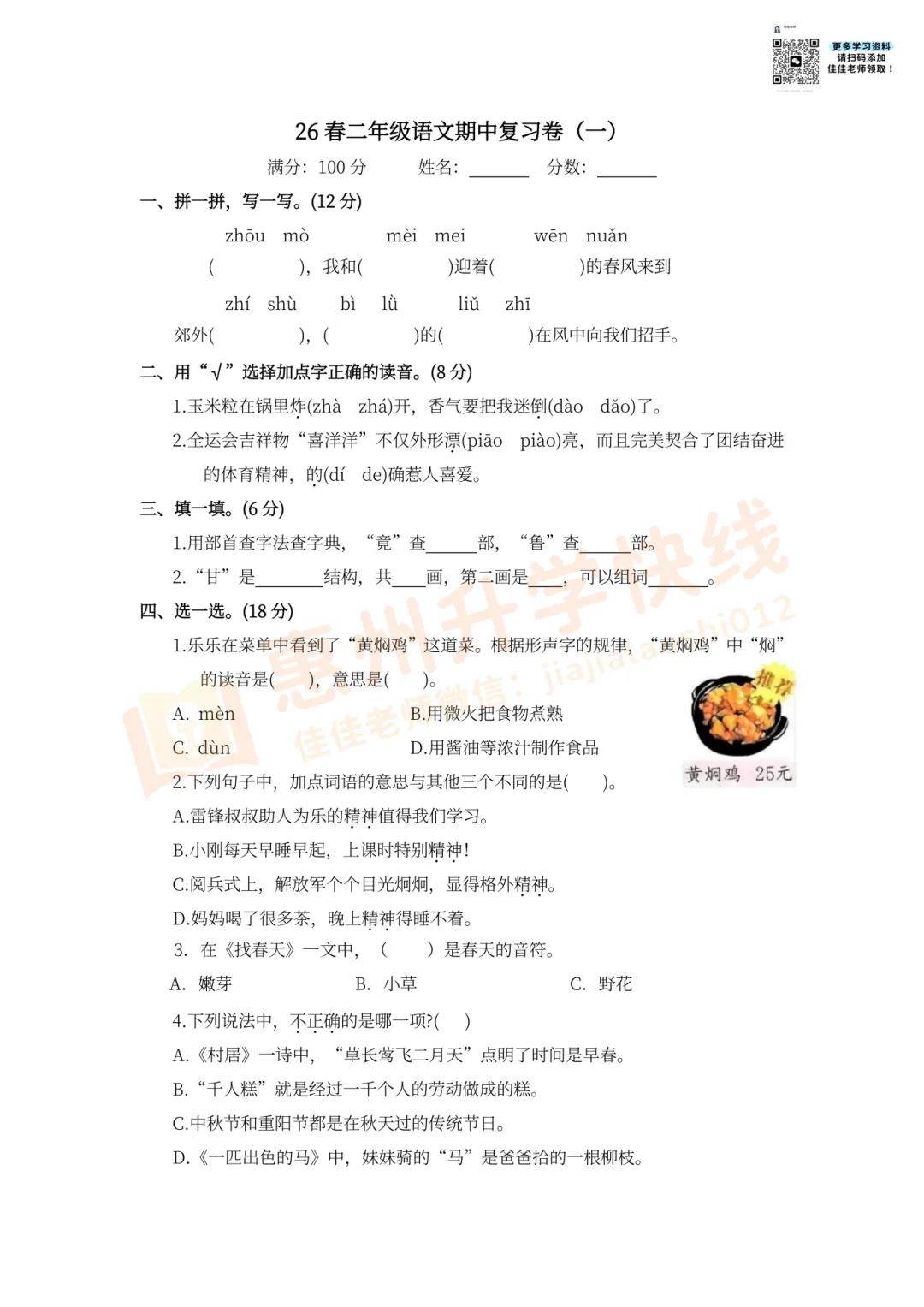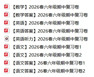 考前练对卷,成绩看得见!马上要期中考试了,给大家准备了惠州学生专属的:2026春1-6年级期中冲刺试卷!配套答案也都有,免费领取!方便孩子高效复习,查漏补缺。