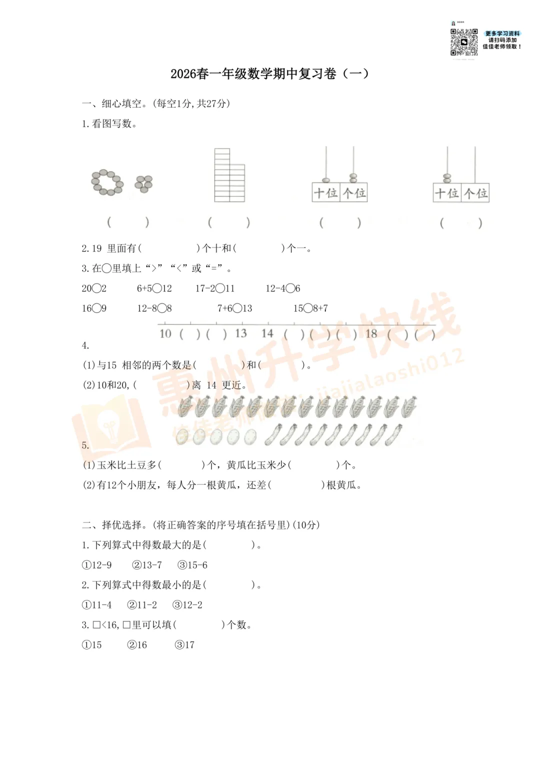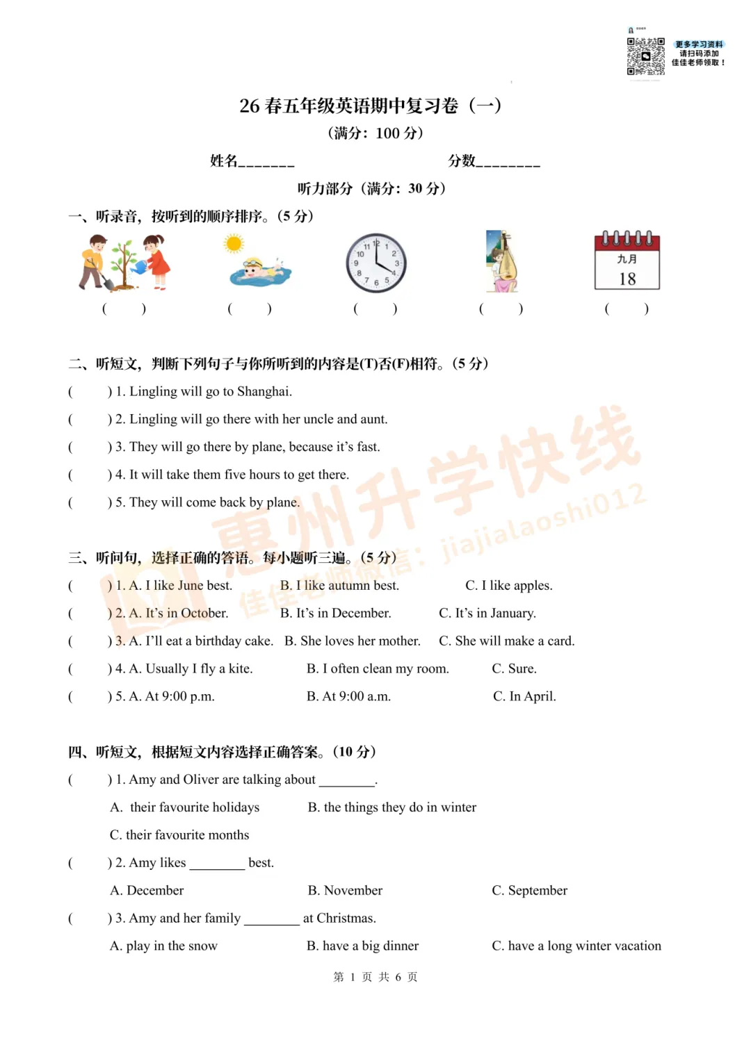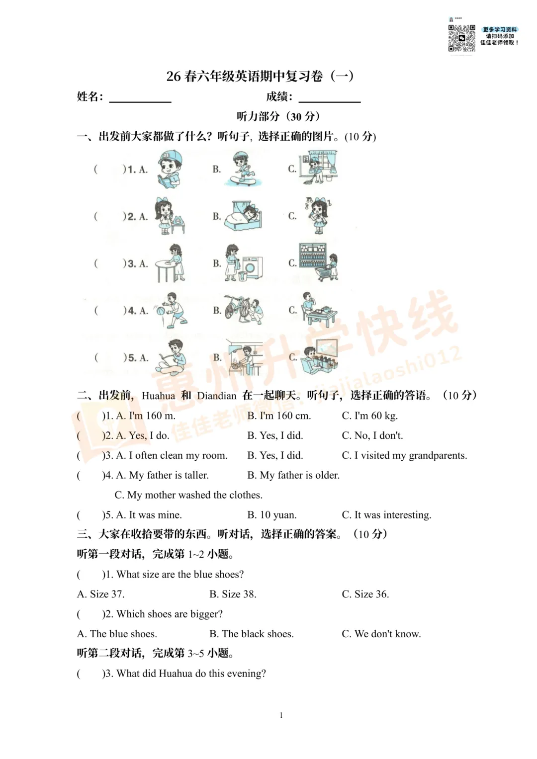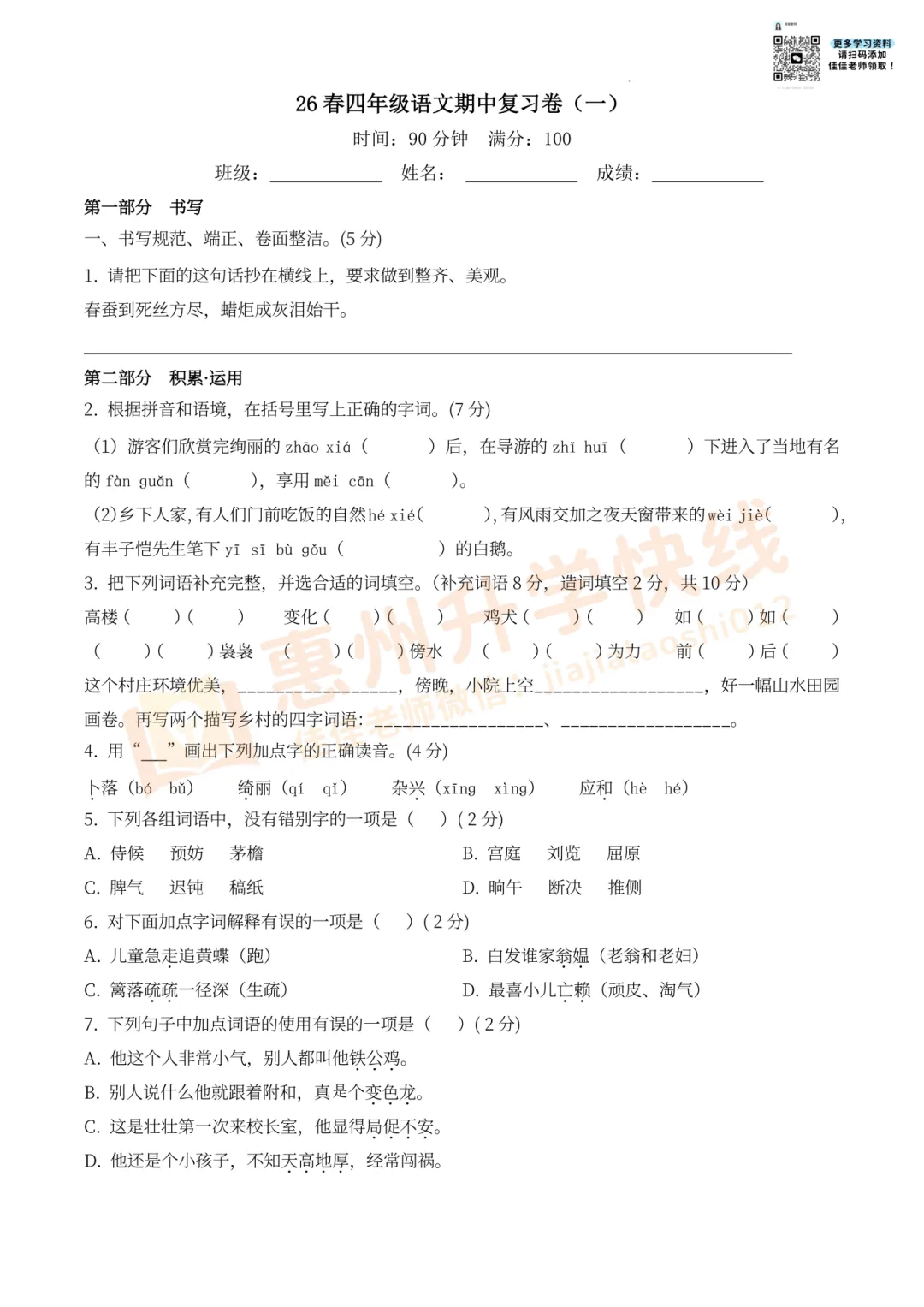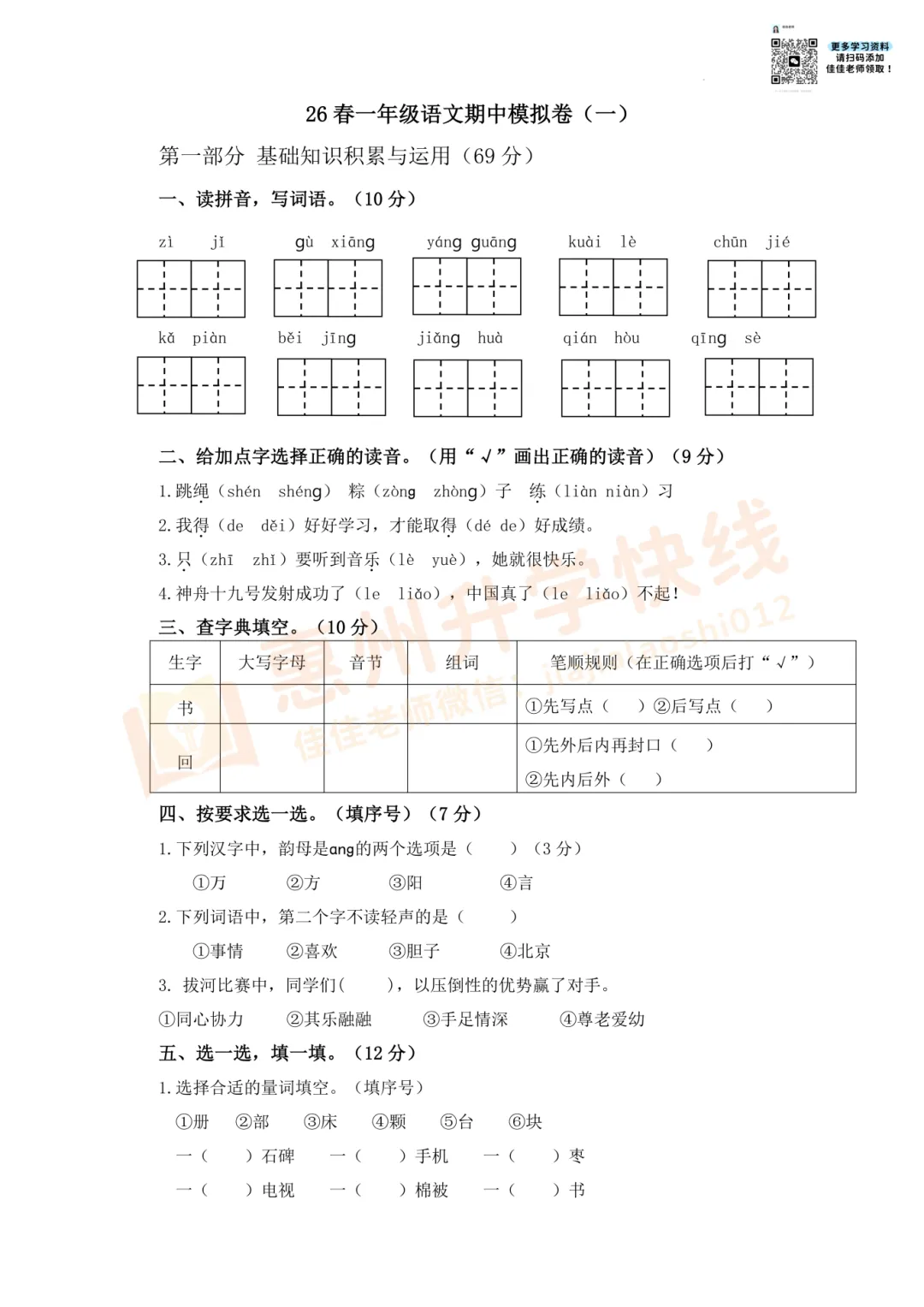 因篇幅有限,仅展示部份试卷。有需要完整版试卷+答案的家长,可扫码进入【惠州2026小升初学习交流群】,回复【期中】,即可免费领取哟!更多学习资料、升学资讯,持续更新中……