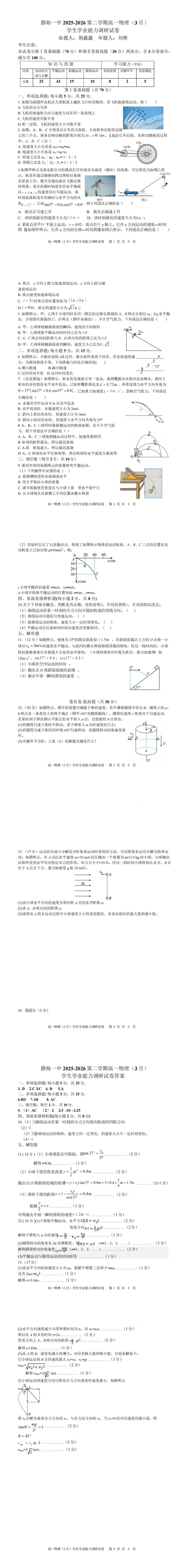 >《高中试卷》天津市静海区第一中学2025-2026学年高一下学期3月阶段检测物理(含答案)
