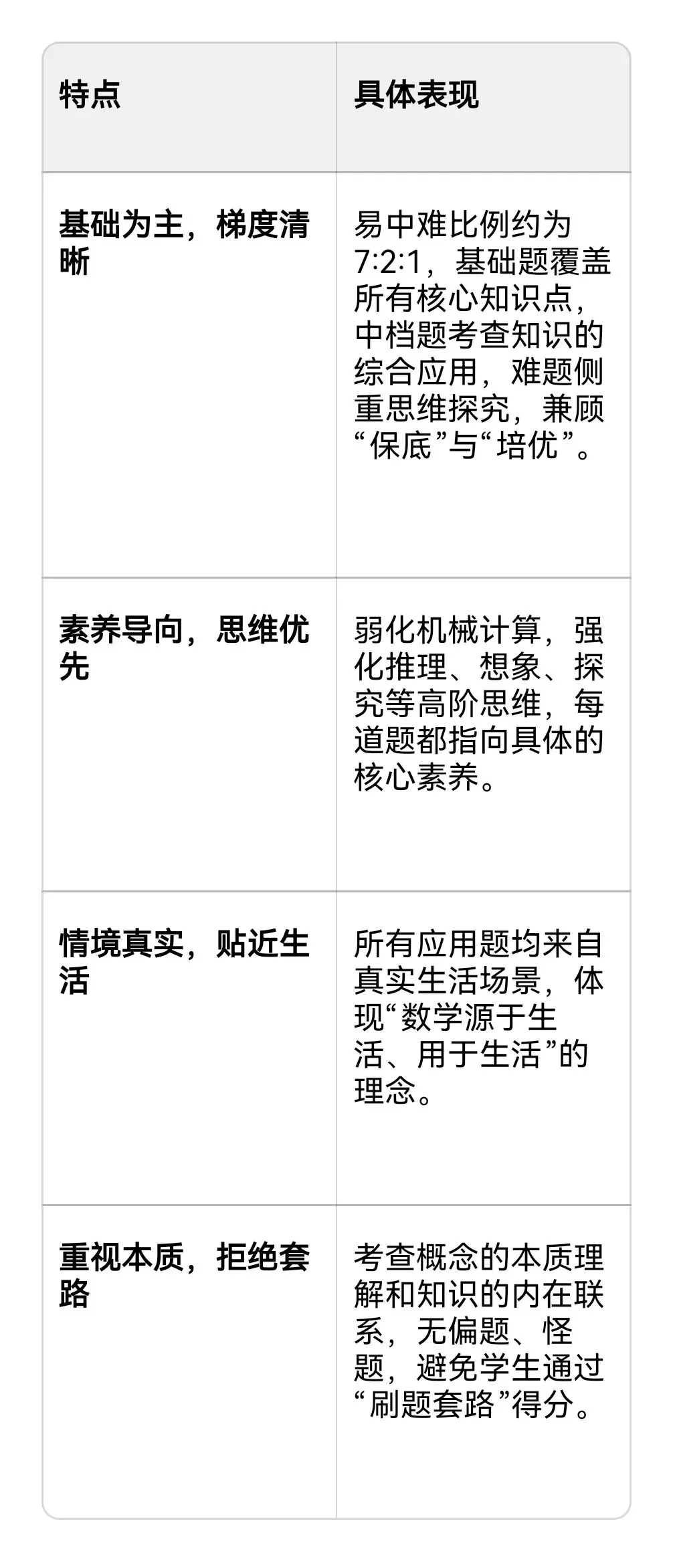→ 教学中应多创设真实的问题情境,让学生在解决问题的过程中理解数学的价值,培养应用意识。