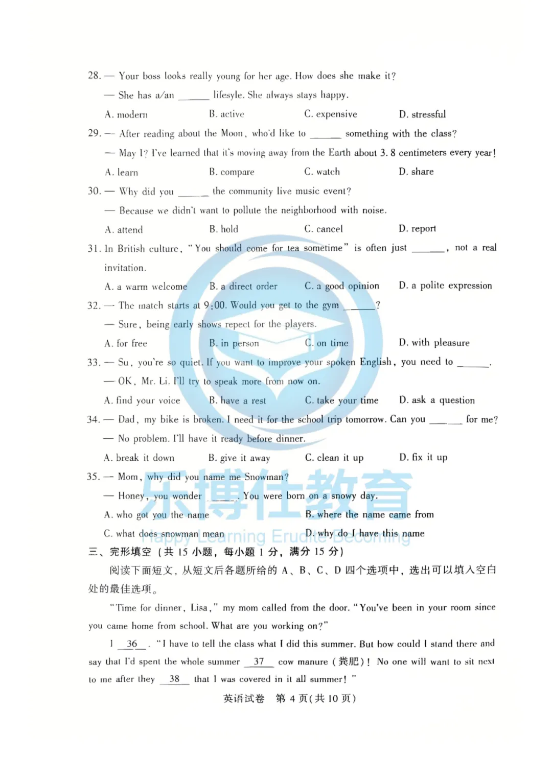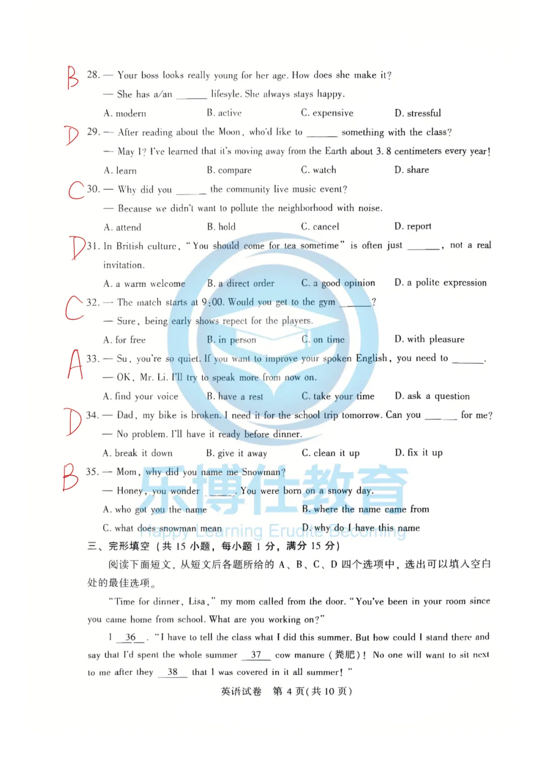 35题:考核宾语从句的语序,这里要用陈述句语序;从意思其实也能作判断;