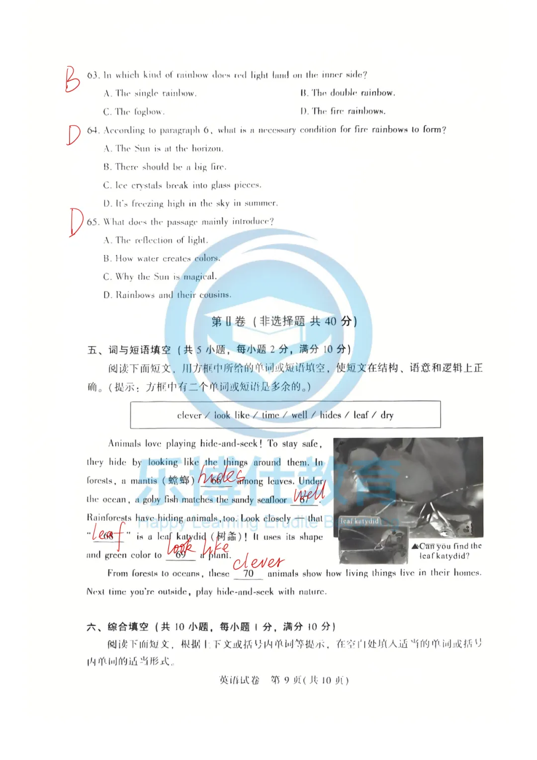 65题:考文章主旨,本文介绍的是四种彩虹,即彩虹家族;