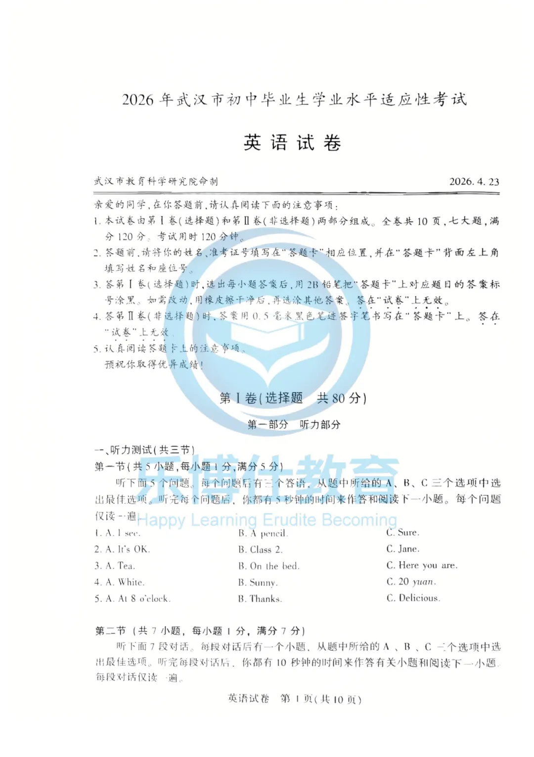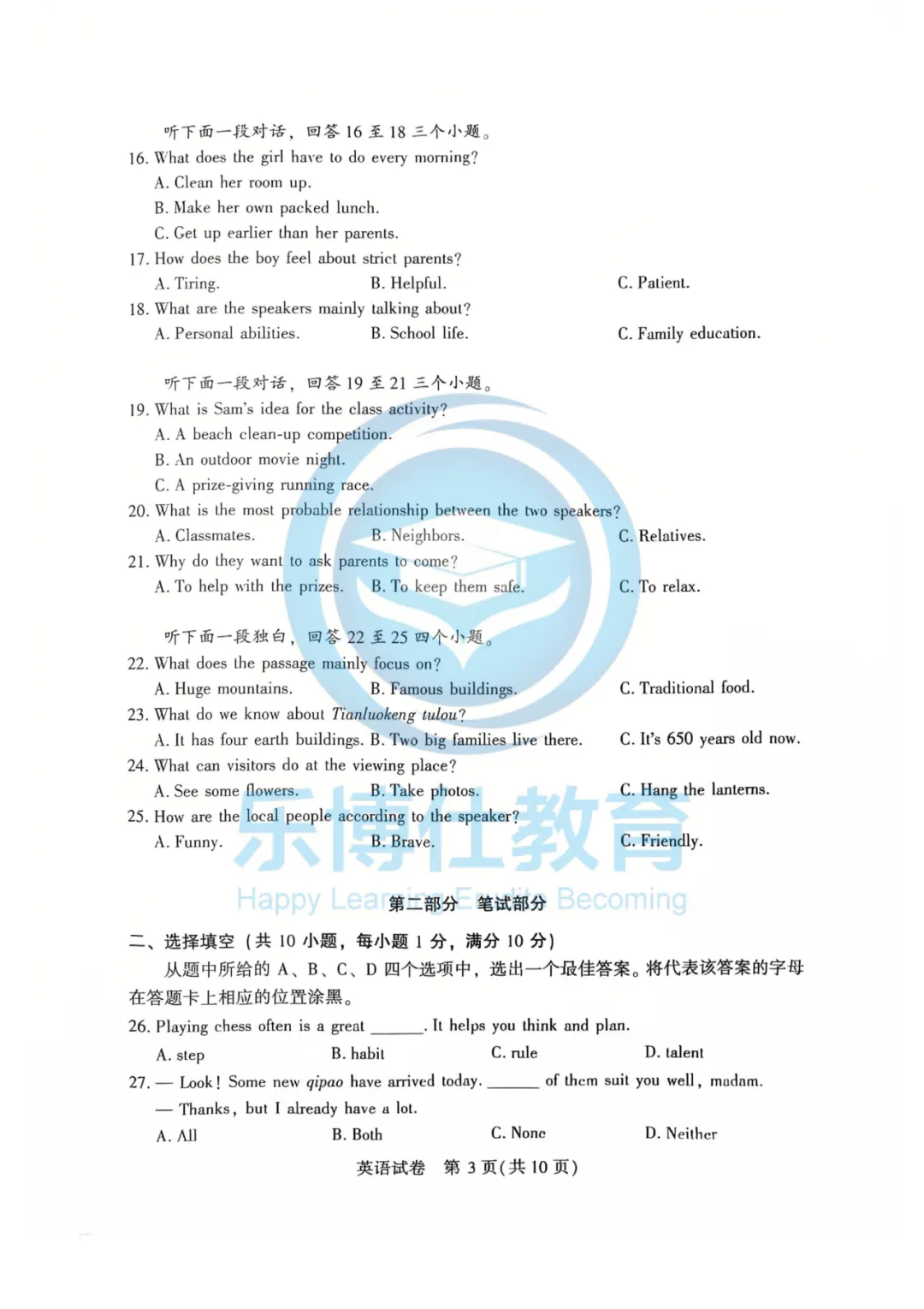 听力25分,暂无音频:从题目来看,选题比较贴近日常生活与学习。
