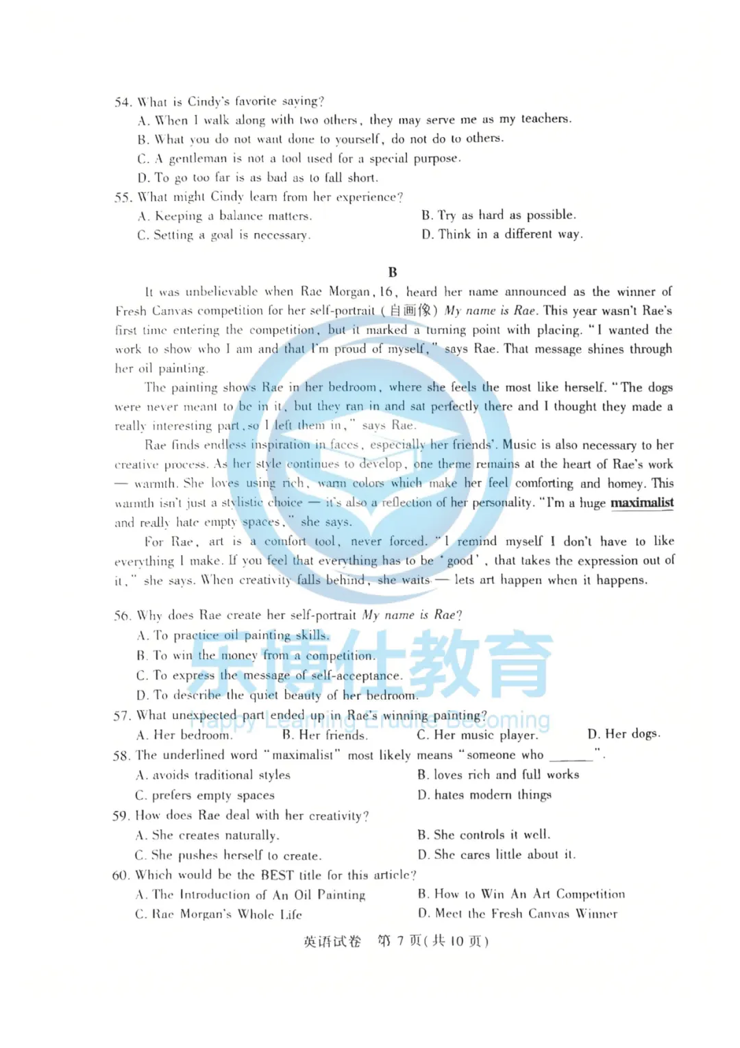 60题考文章主旨,本题用排除法,重点在A(画)和D(人)当中选,文章主要篇幅是在介绍人物的心路历程;