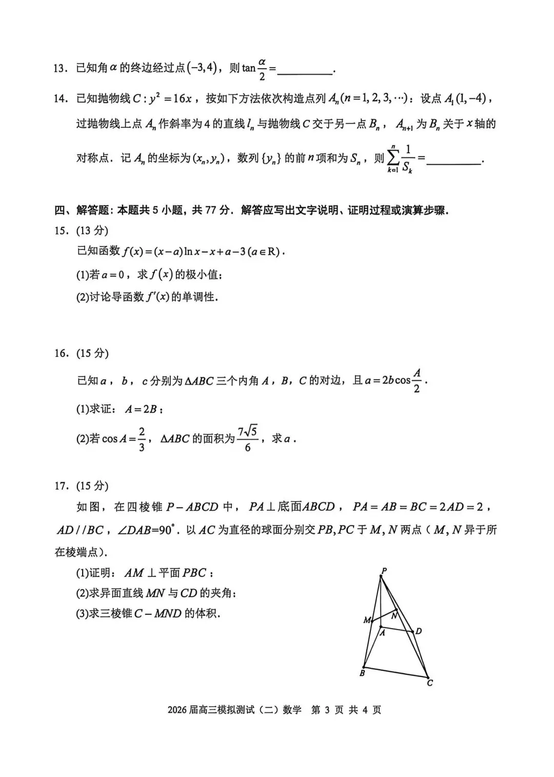 2026年陕西高考三模试卷--数学