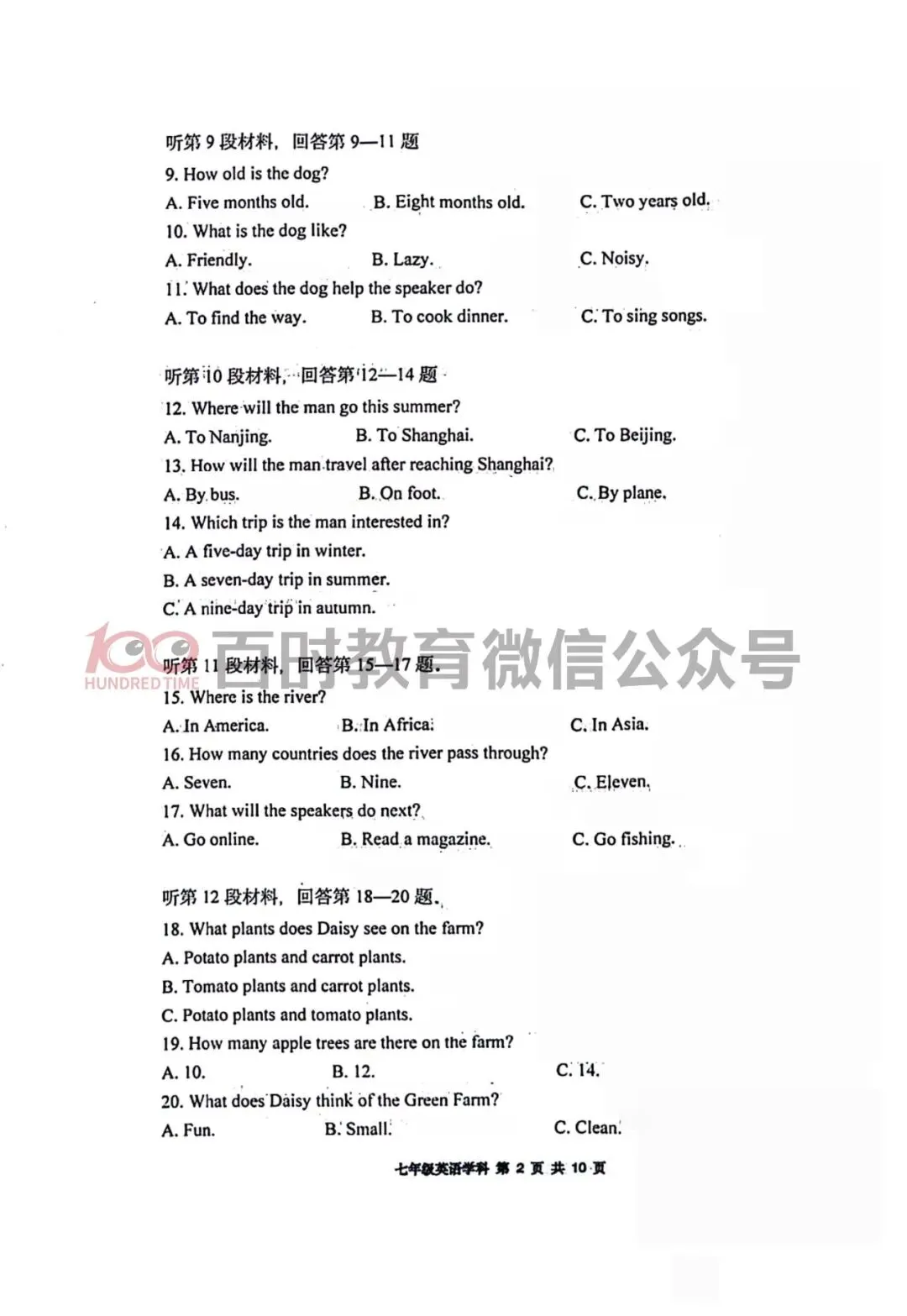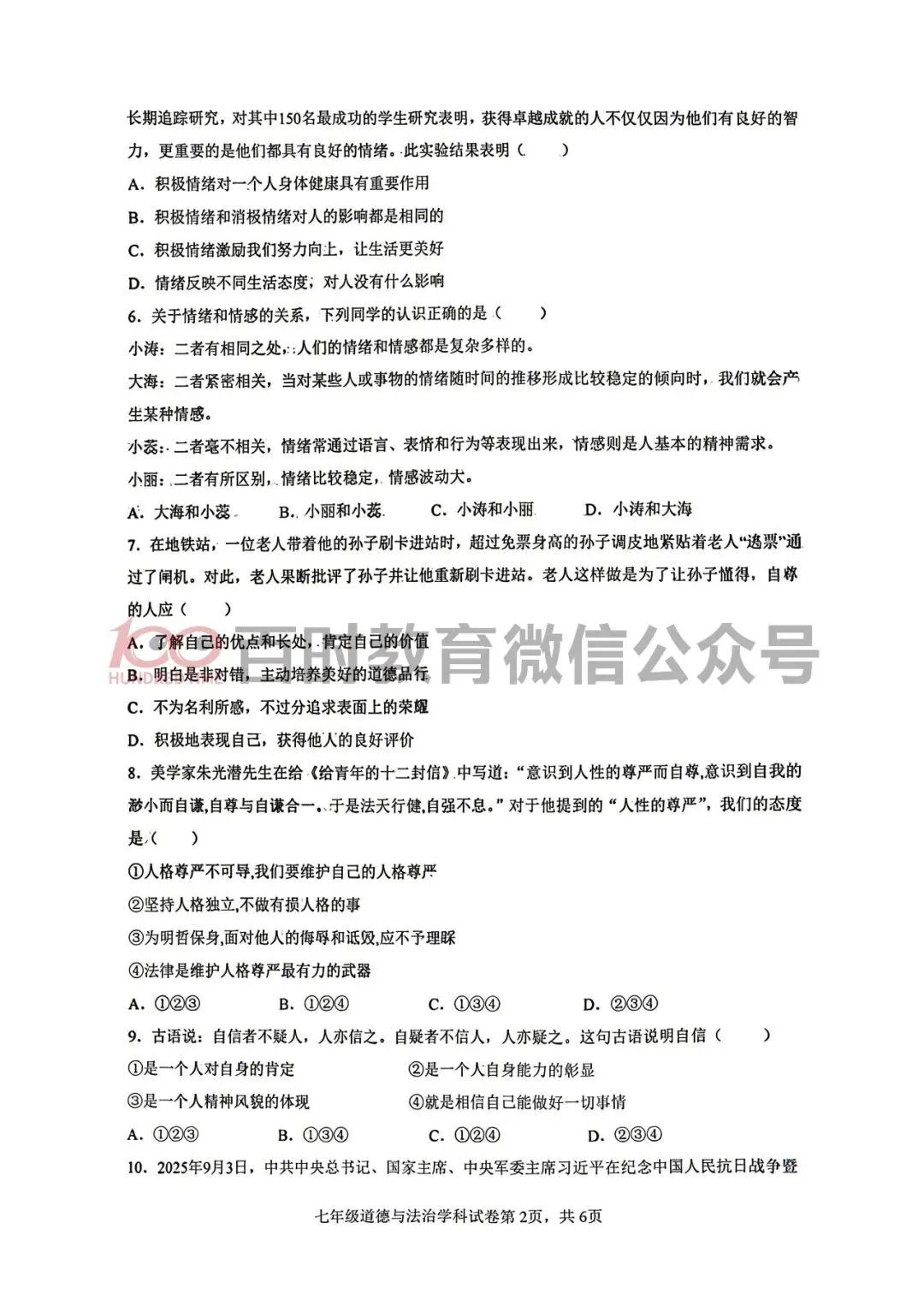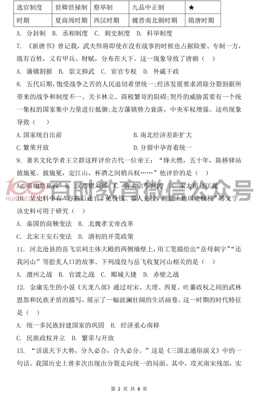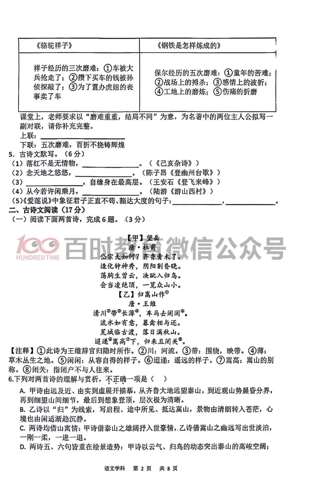 初三测试!126中学和平湾初三【道/历/物/语/数】试卷!