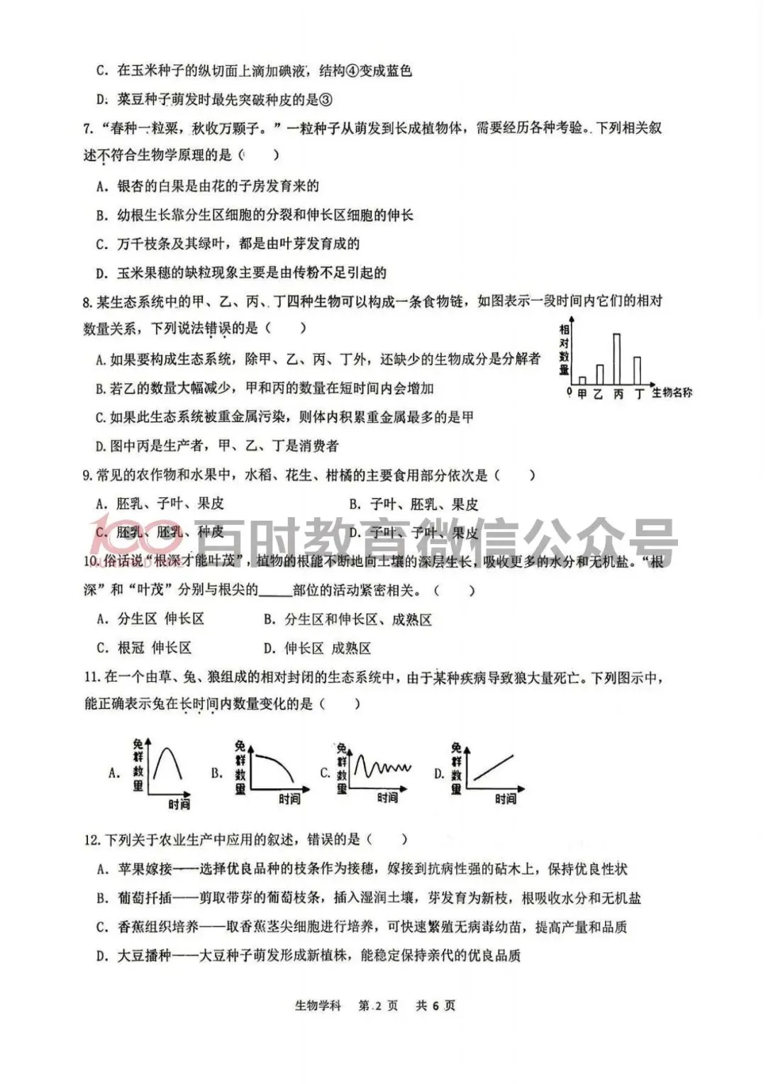 初三试卷!育才初三真题+沈阳初二生物地理真题!