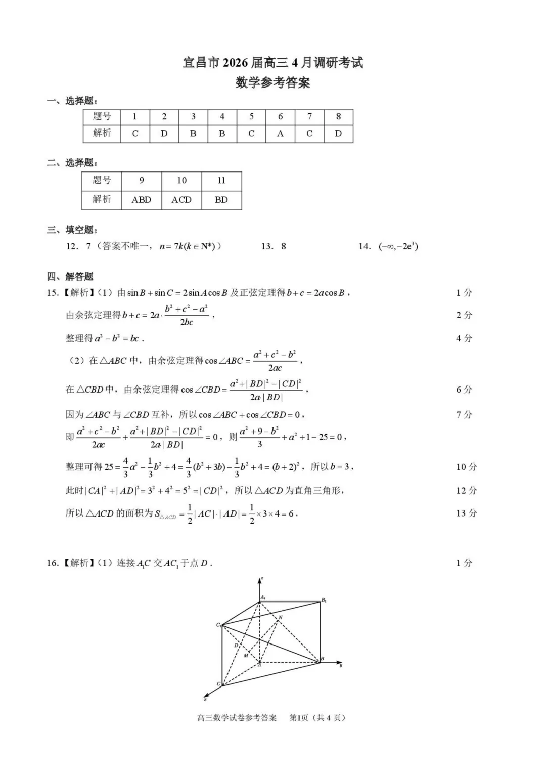 作者寄语:湖北宜昌市2026届四月调研考试数学试卷+答案,7天有效领取,手慢无!!!