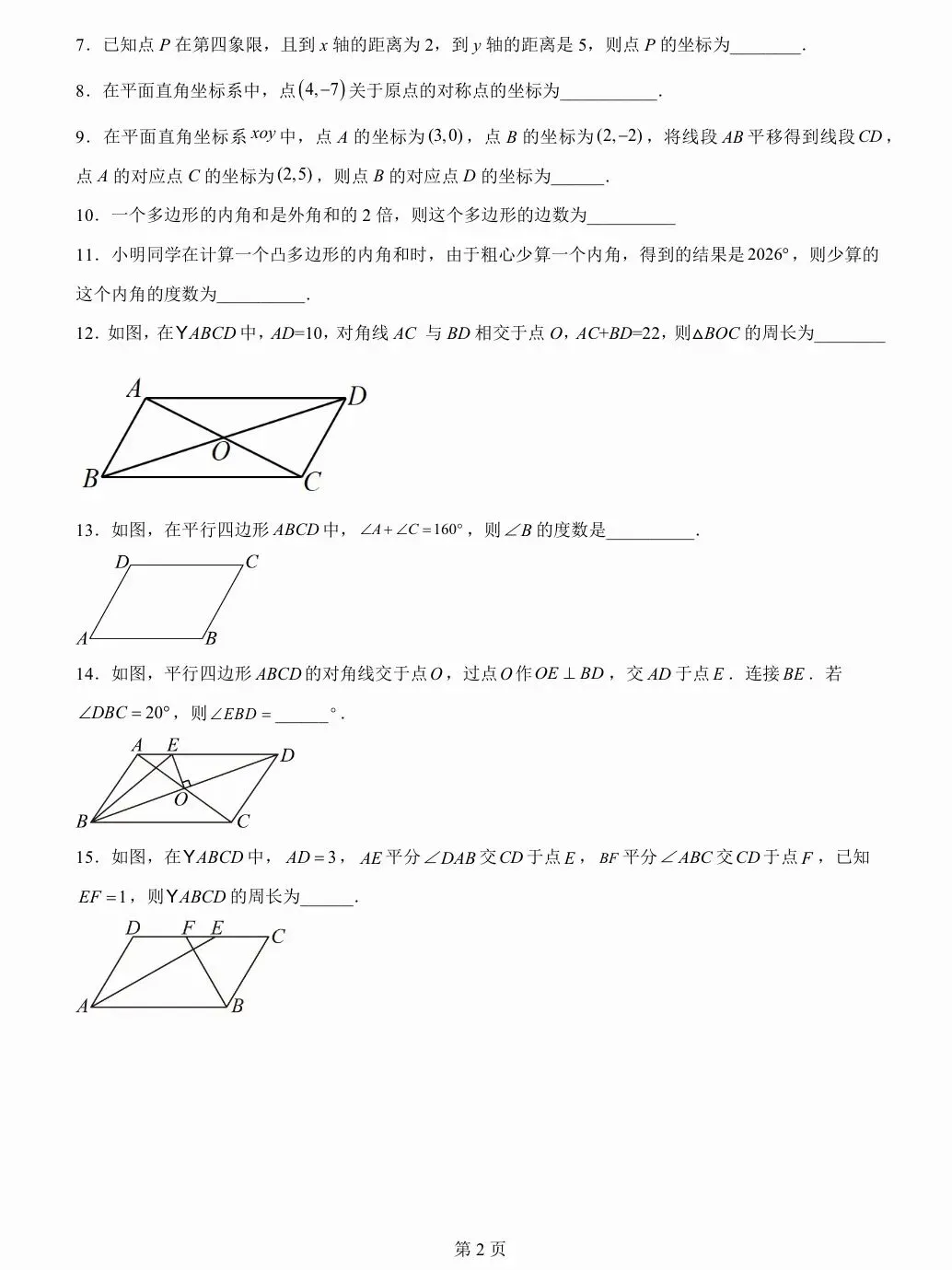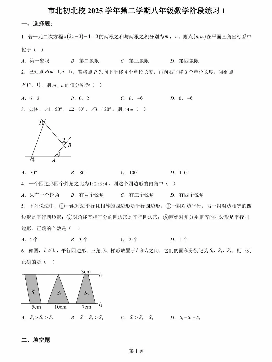 >25-26上海八下数学名校试卷3月月考卷期中卷