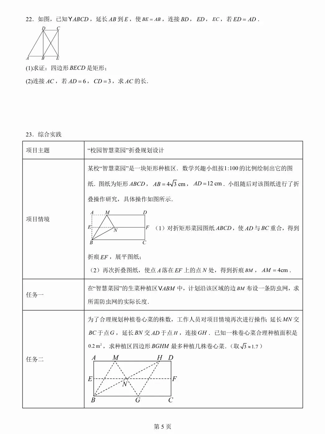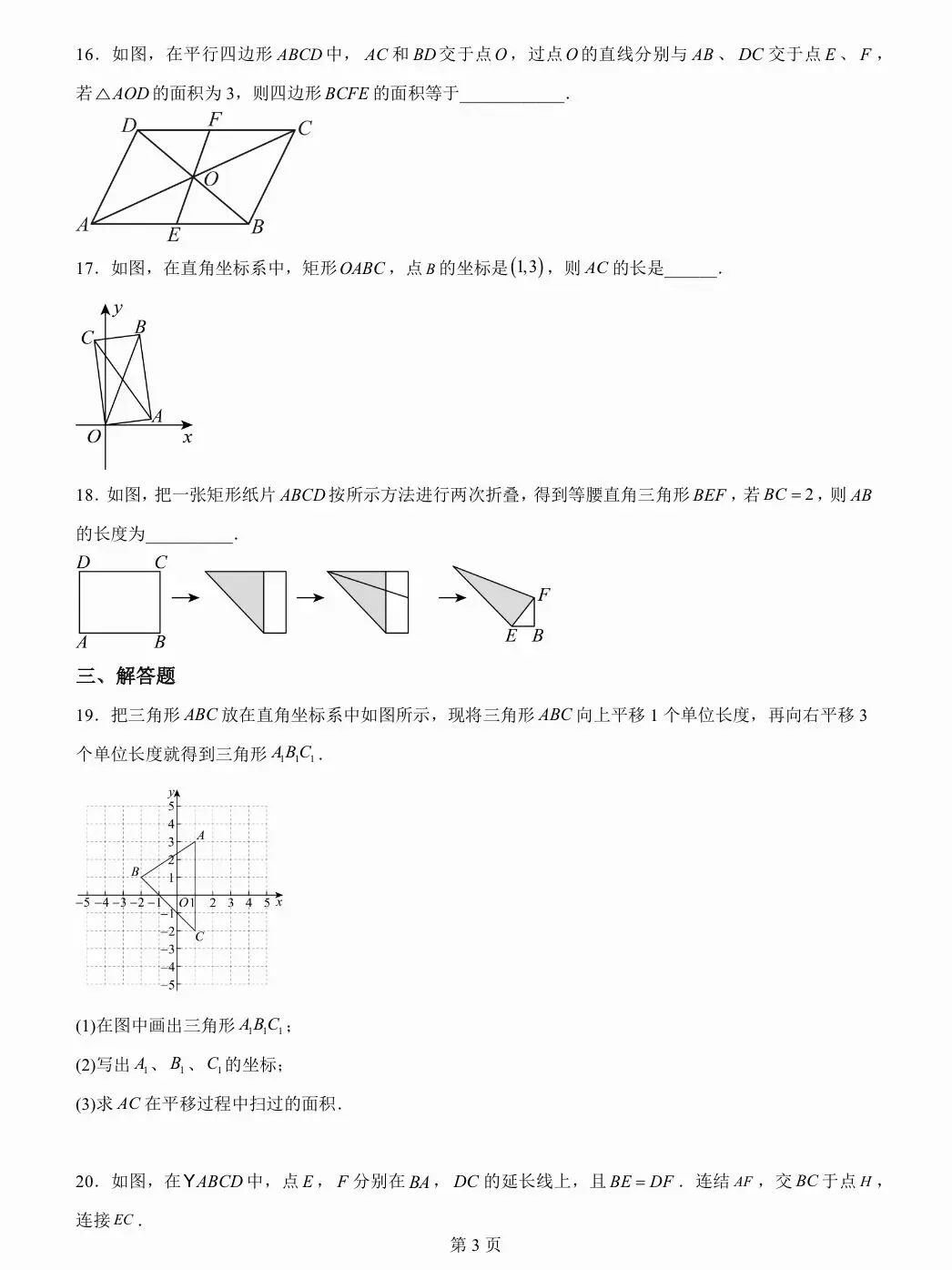 25-26上海八下数学名校试卷3月月考卷期中卷