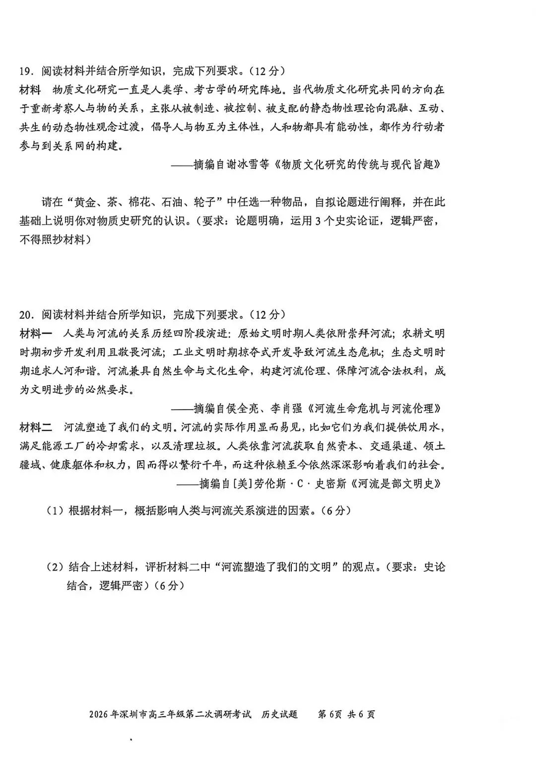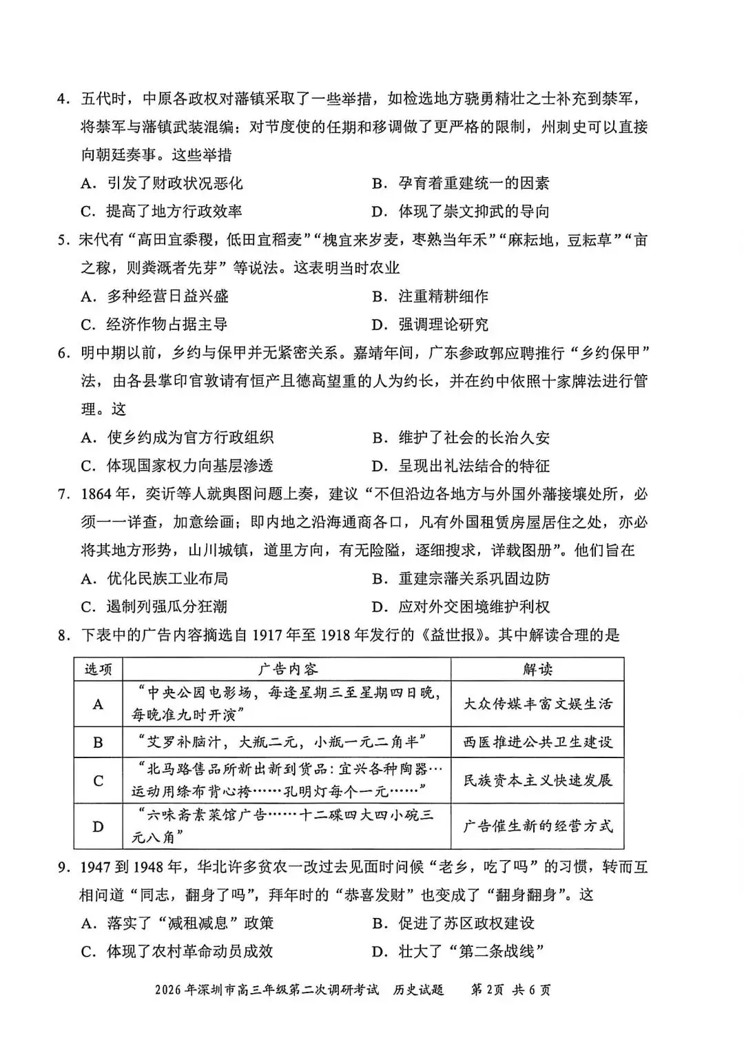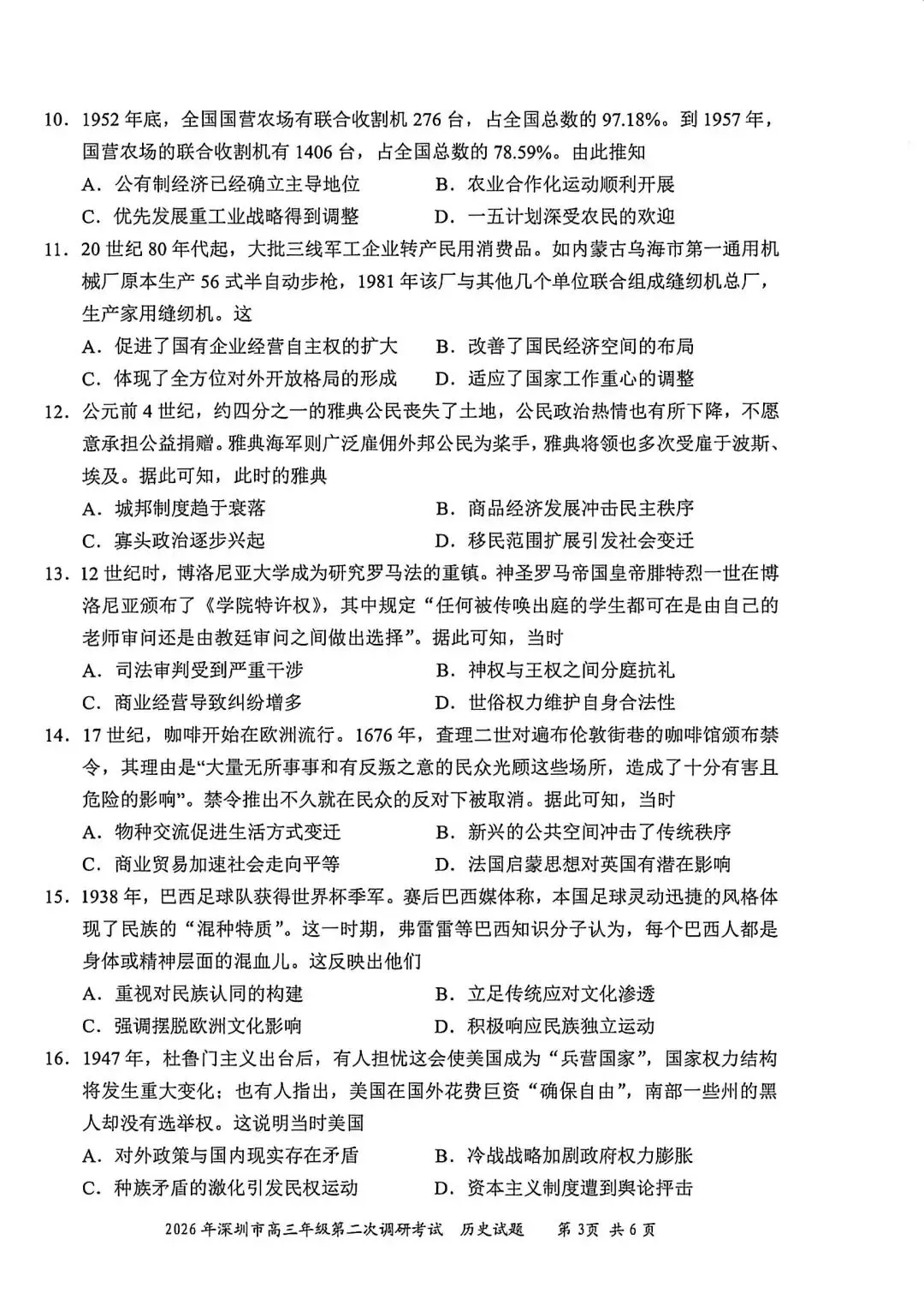 >试卷分享丨 2026 年深圳二模历史试卷及参考答案