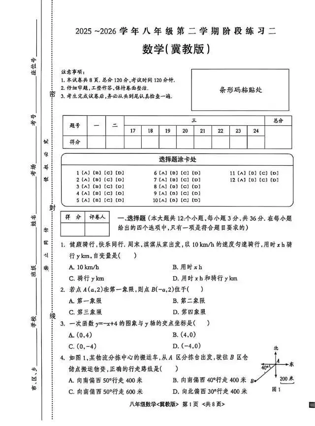 【模拟试卷】2025-2026年河北省八年级第二学期阶段练习二『数学』(冀教版)!