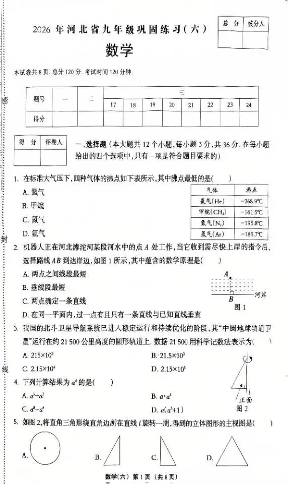 >【模拟试卷】2026年河北省九年级巩固练习『数学』试卷六!