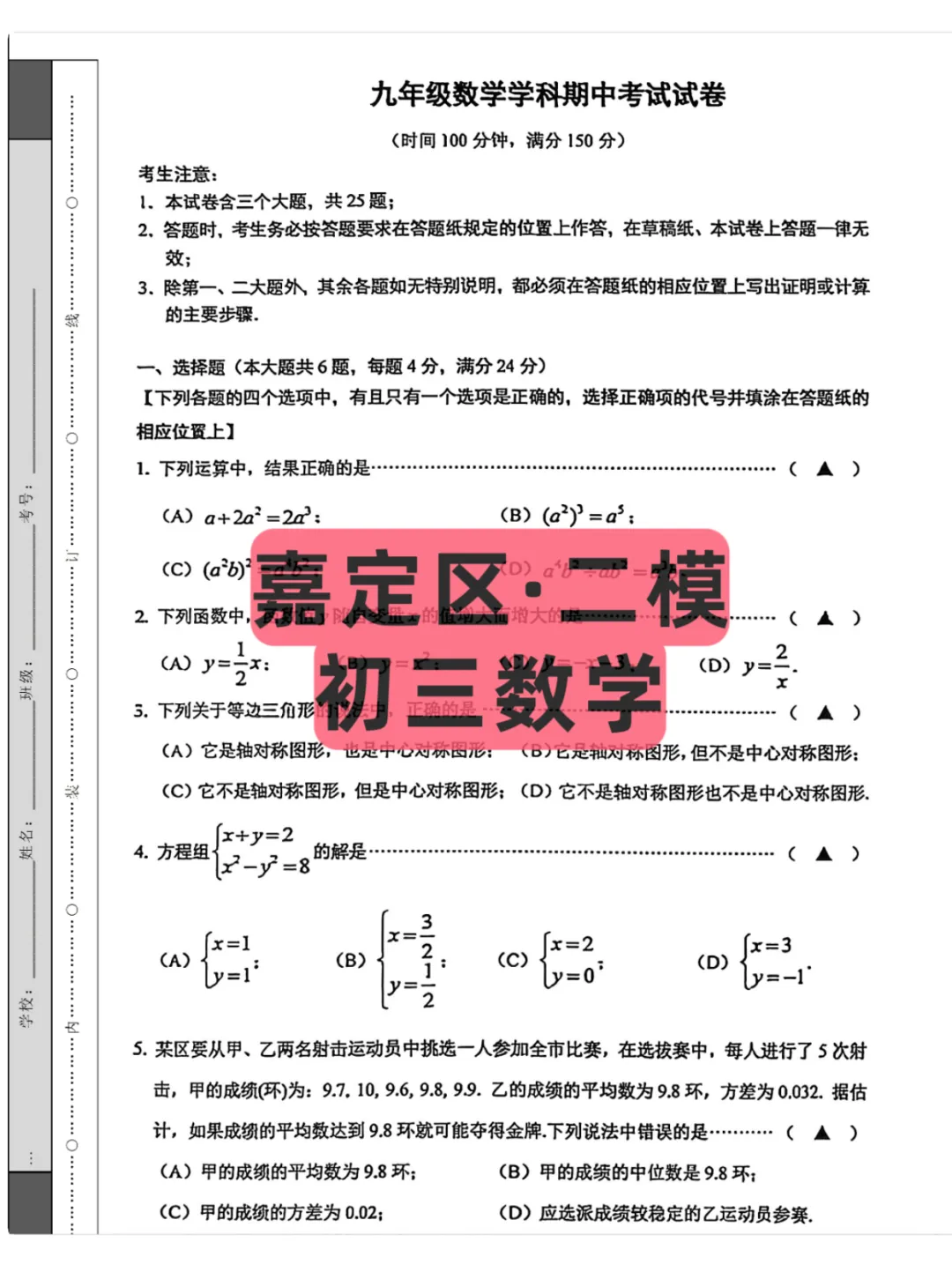 2026 上海嘉定初三 4 月二模联考,是中考冲刺阶段极具参考意义的综合性测评。严格贴合上海中考考纲与区域命题特色,依托试卷及答案解析,细致排查各科知识漏洞,优化解题方法与答题规范,摸清自身薄弱板块,把握命题趋势与得分关键,灵活调整复习重心,稳步强化应试能力,高效备战上海中考。