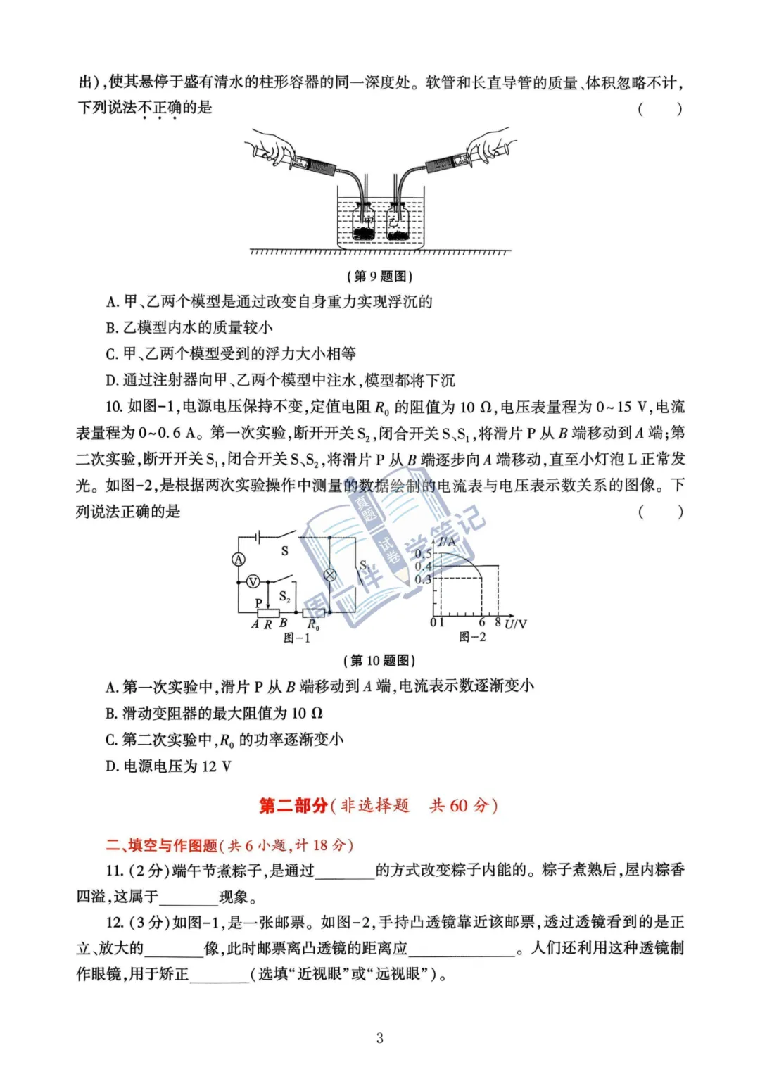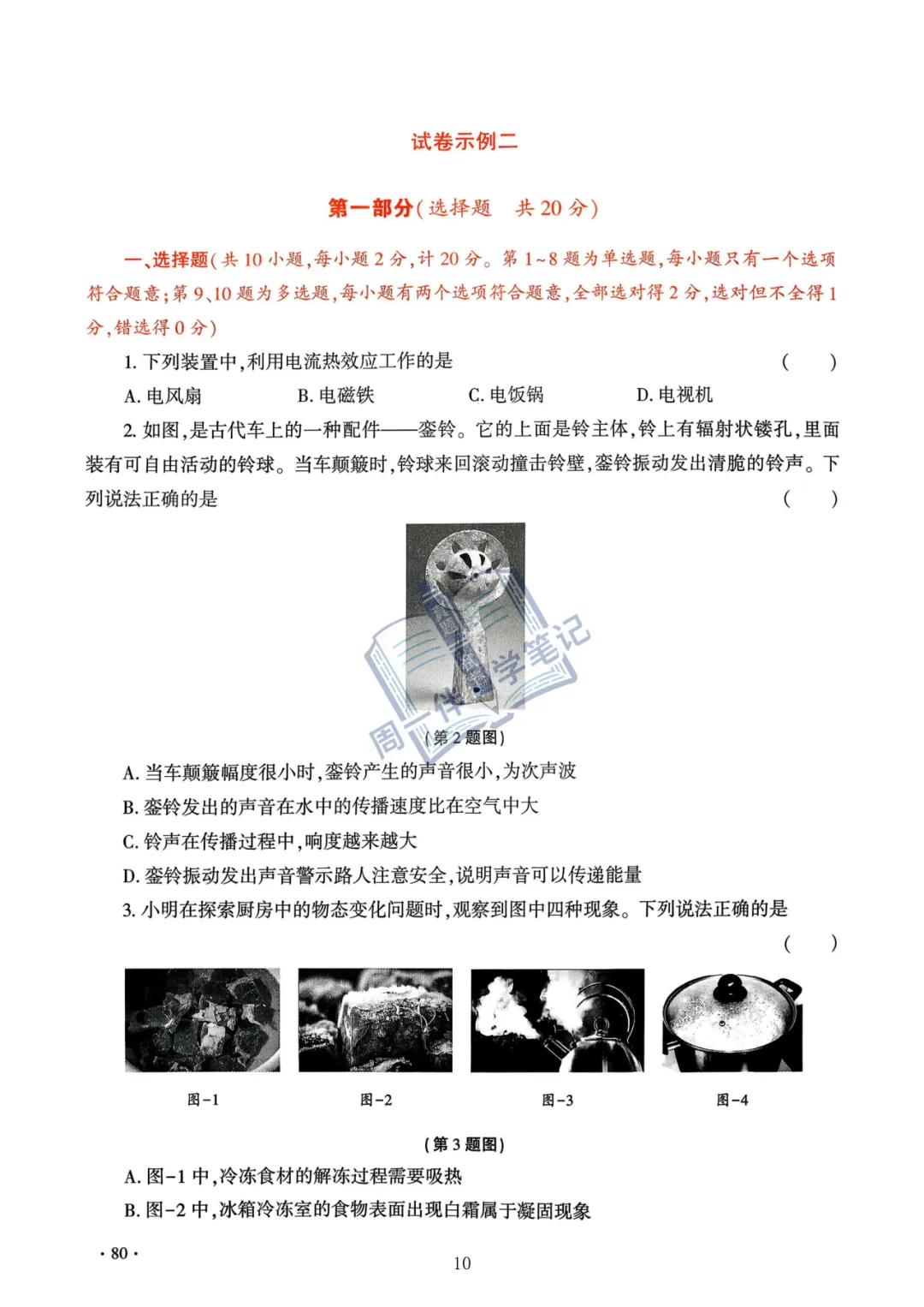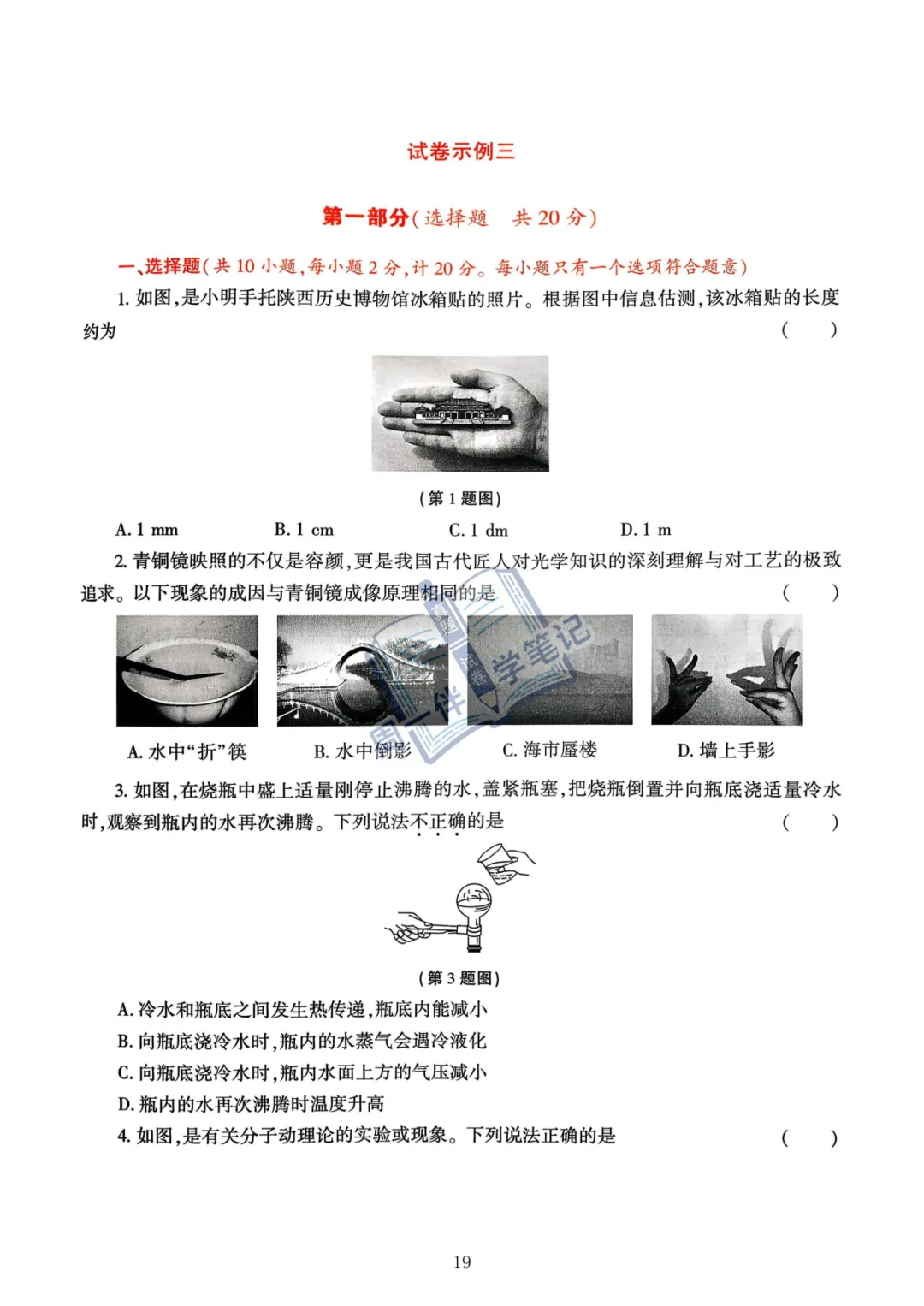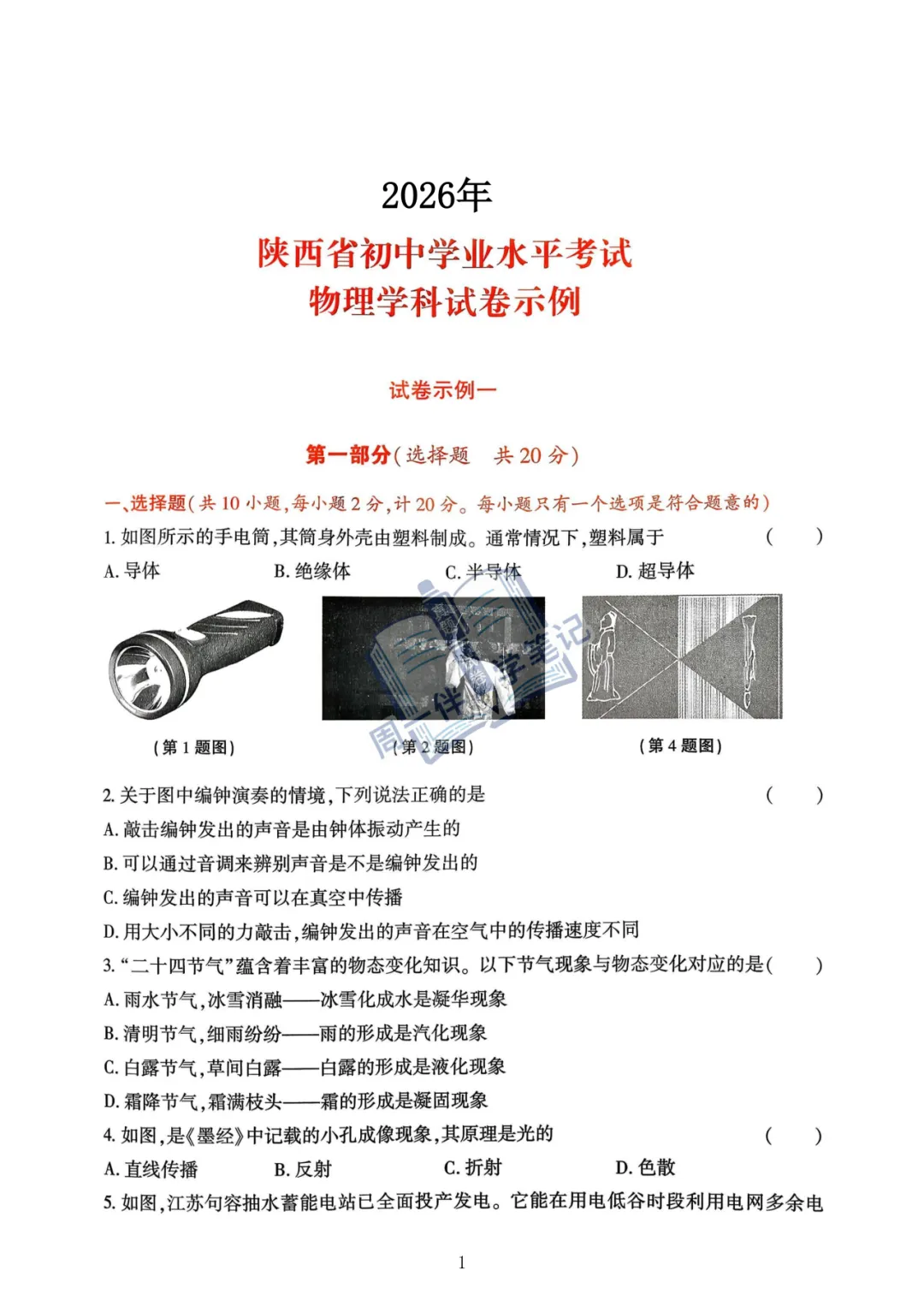 本次分享为西安地区【中考物理示例卷】2026年陕西省物理示例卷(试卷示例)3套(可打印),适合九年级同学自测练习。
