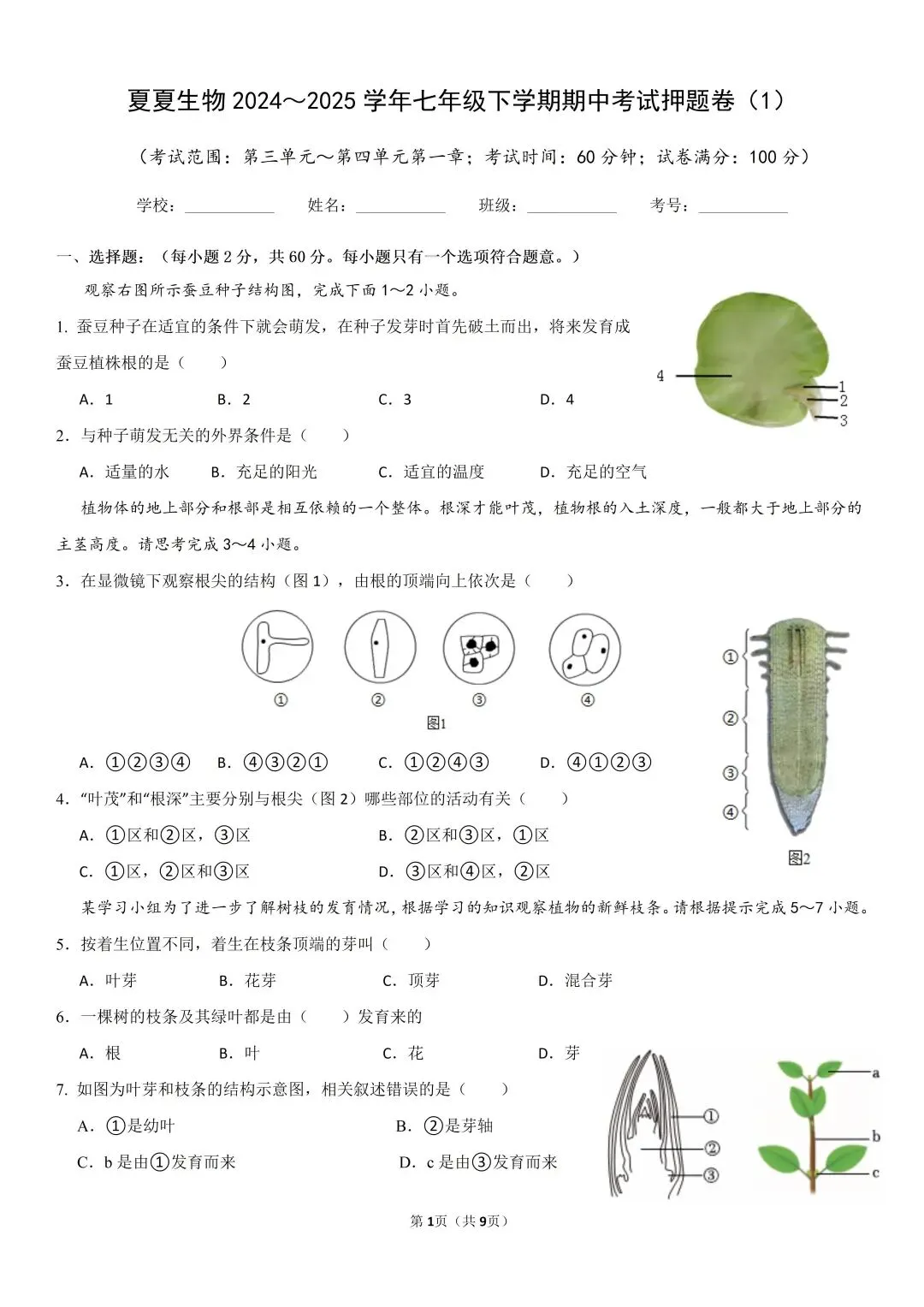 夏夏生物七下期中押题卷来啦!七下生物视频课配押题卷,考试轻松95+!