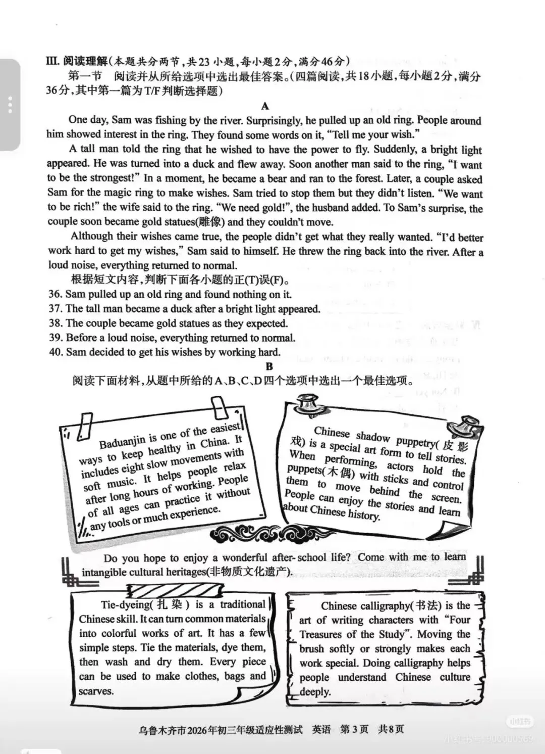 重点:细节理解+推理判断(如“Sam threw the ring back into the river.”“everything returned to normal.”