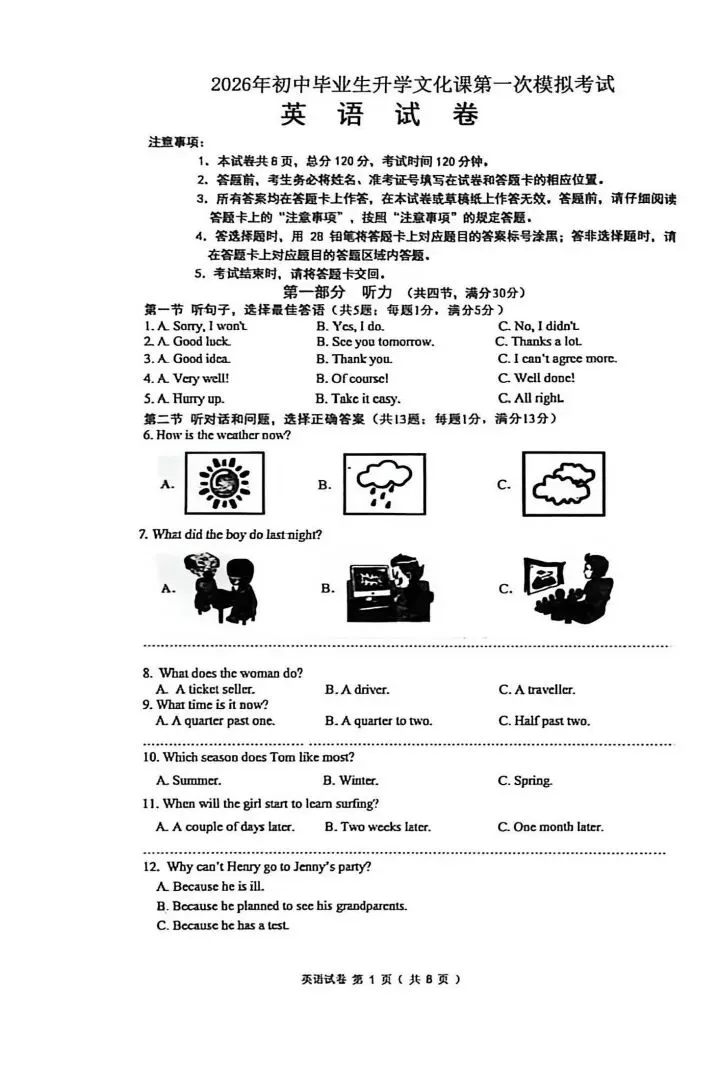 2026版中考英语《提分小卷》(含答案后附下载链接)