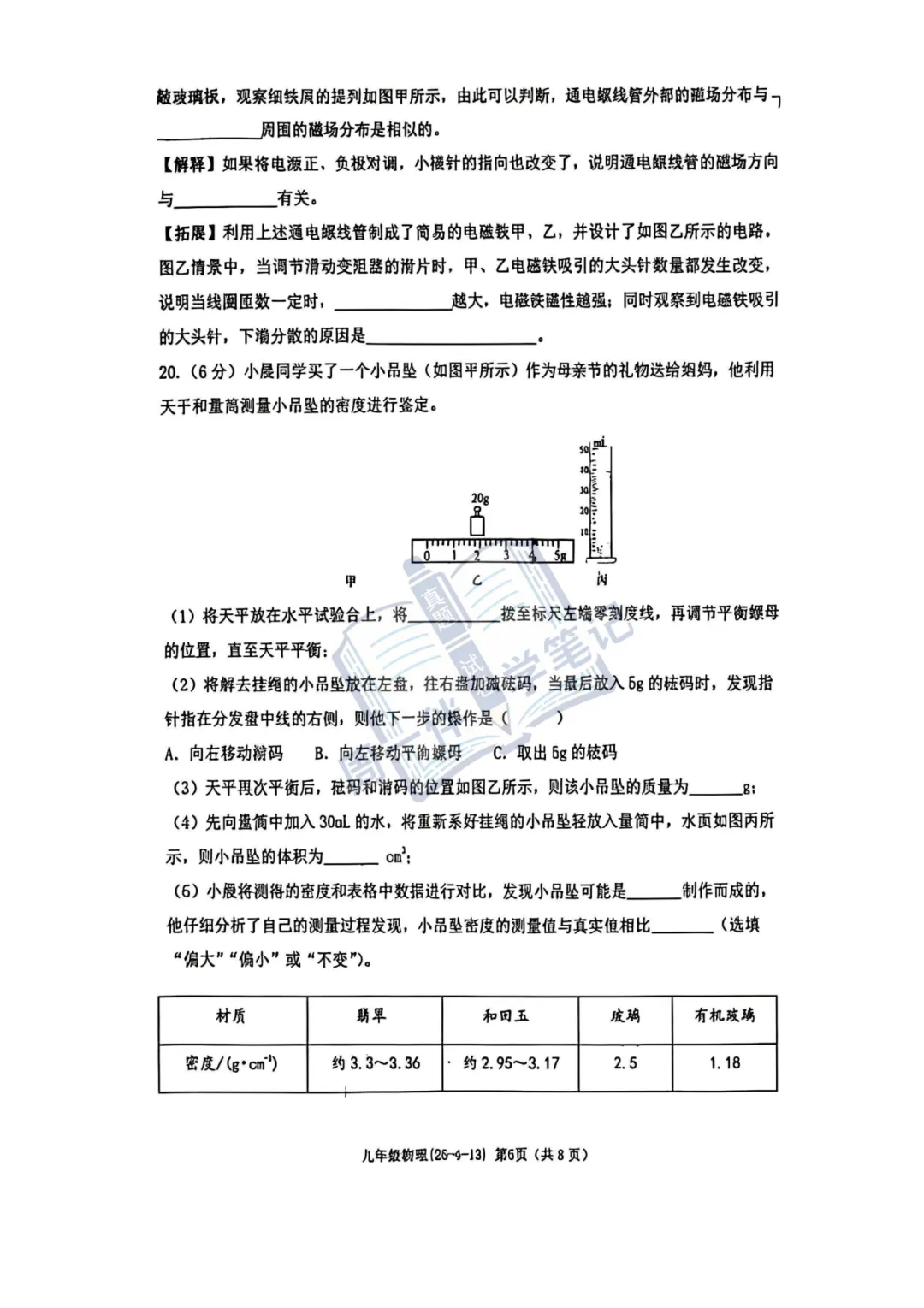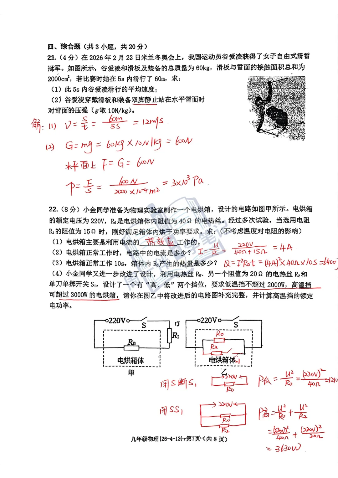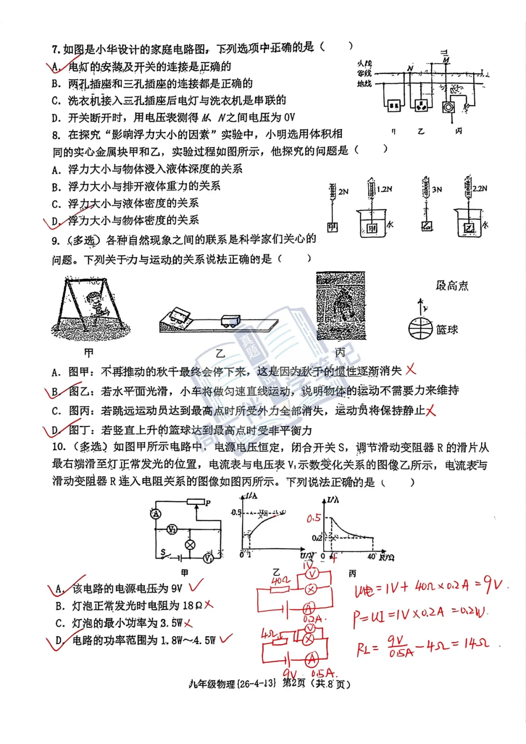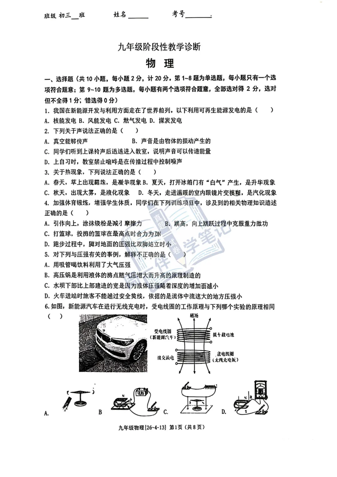 本次分享为西安地区【初三试卷】2026年西工大物理四模试卷+答案解析(可打印),适合九年级同学自测练习。