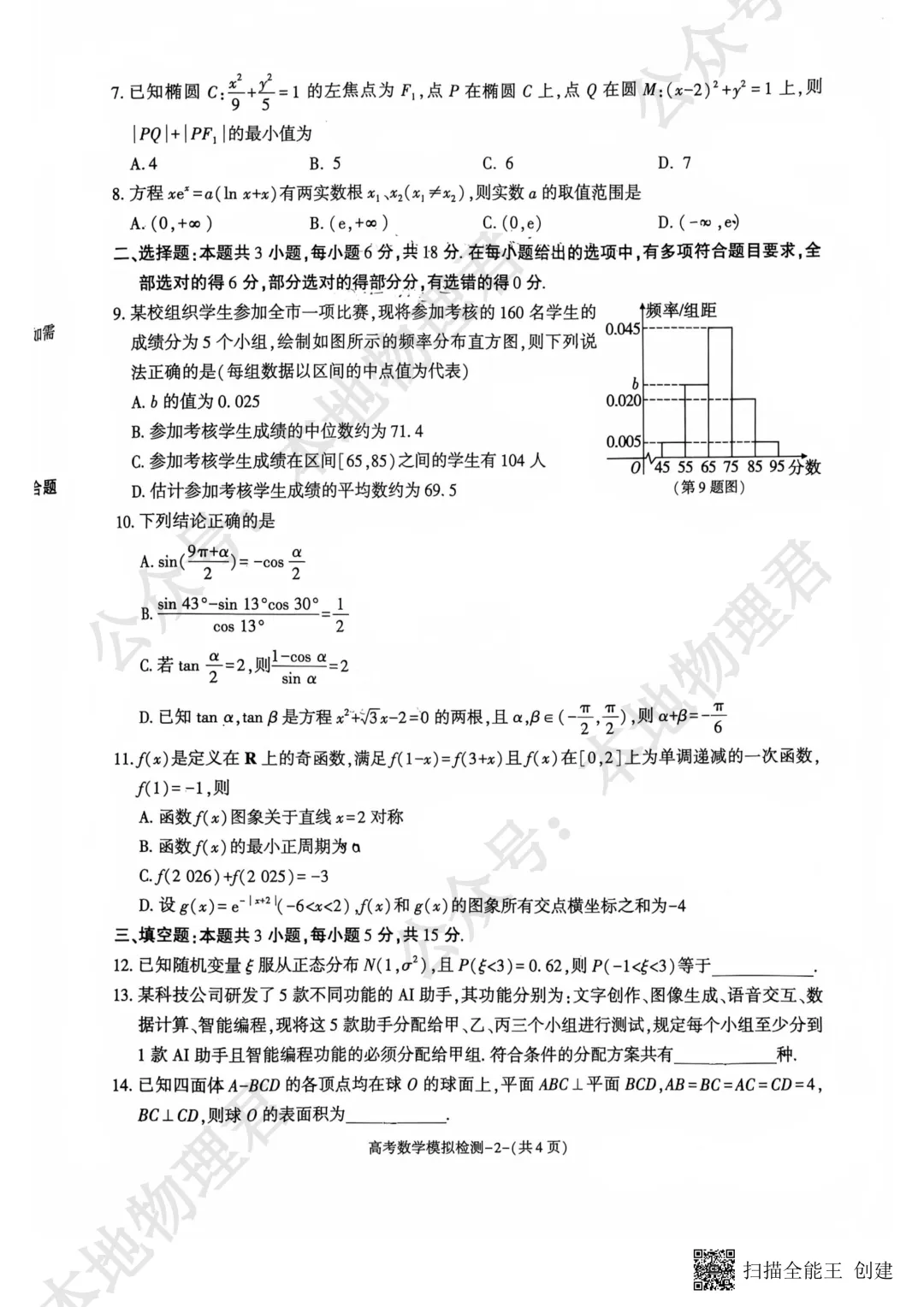 安徽合肥市二模高三数学试卷及逐题解析(2026.4)