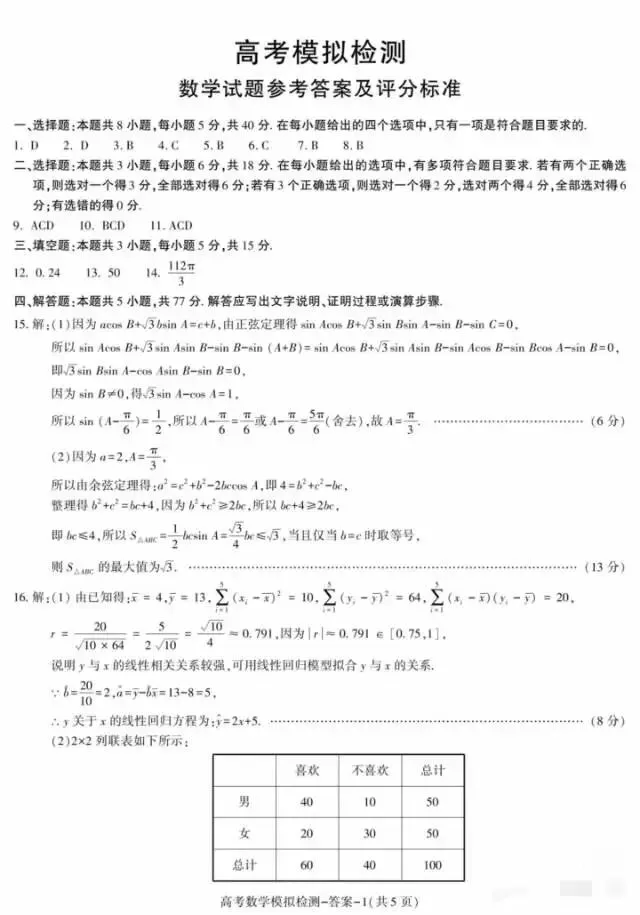 2026届高三模拟数学试卷及答案河北