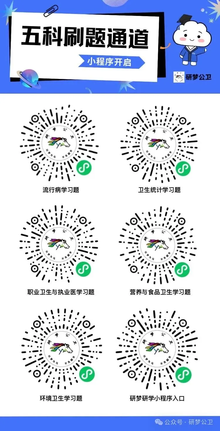 公卫考研之路,既充满挑战也蕴藏机遇。为了帮助广大公卫考研学子更好地备考,我们特别推出“公卫考研每周一练”活动。通过每周的习题练习,助你巩固知识点,提高解题能力,为上岸公卫做好充分准备。