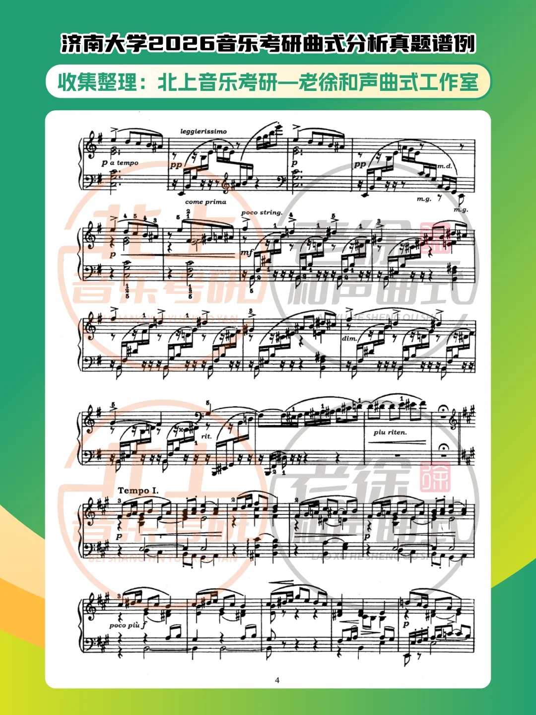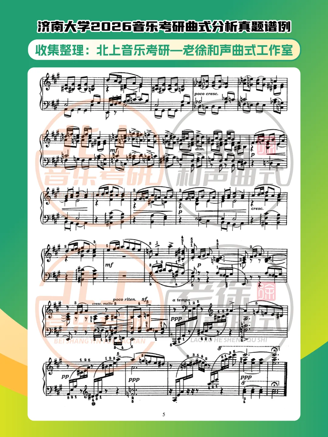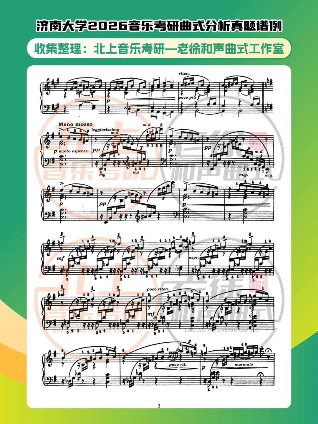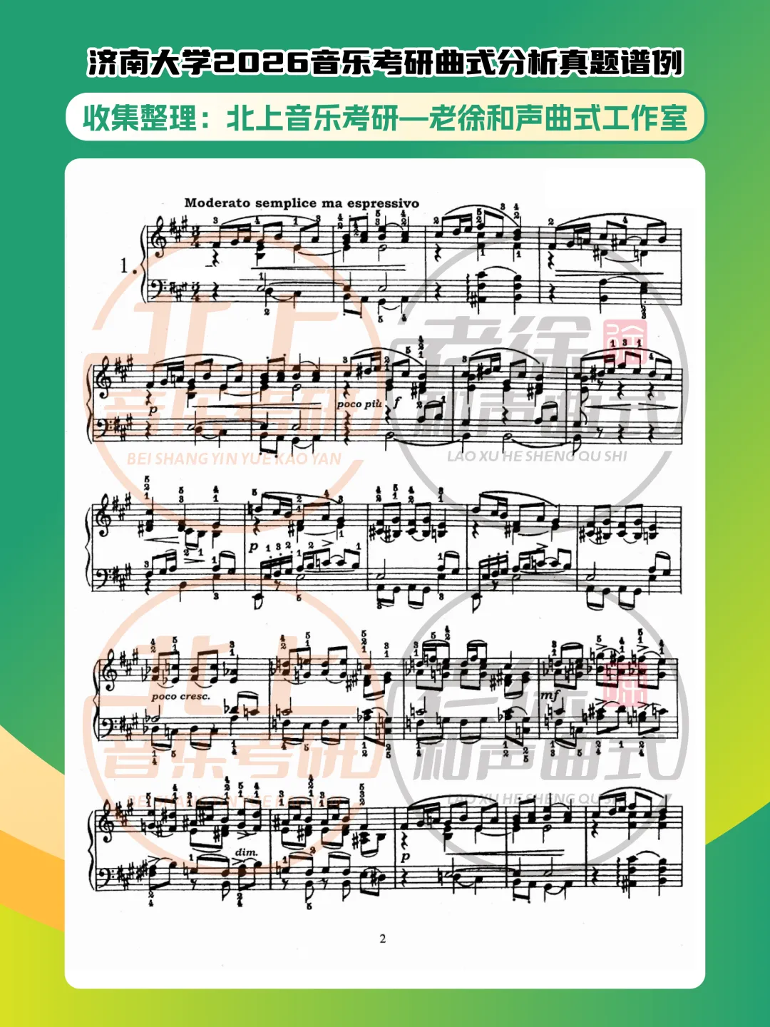 >济南大学2026音乐考研曲式分析真题谱例|北上音乐考研—老徐和声曲式工作室收集整理