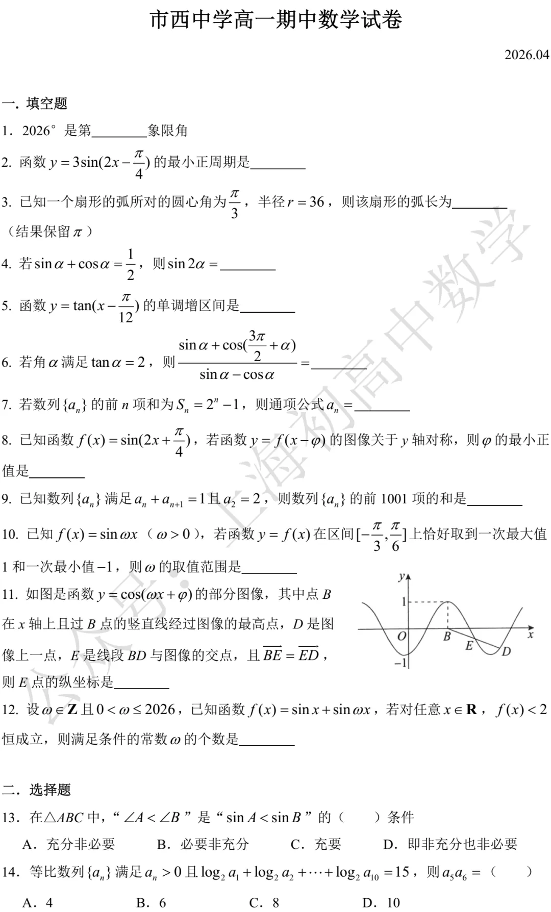 往期试卷资料 2026上海春考数学试卷及答案 近五年上海春考数学试卷及详答 2025上海高考数学试卷及答案 2024上海春考数学试卷及详答