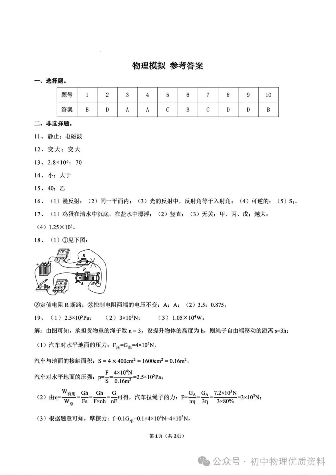 >2026年沧州物理模拟试卷(含答案)