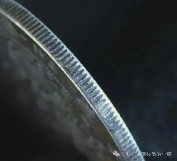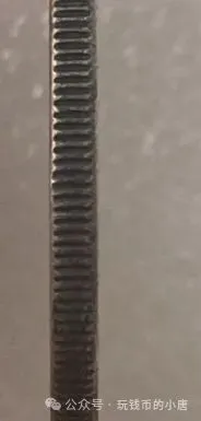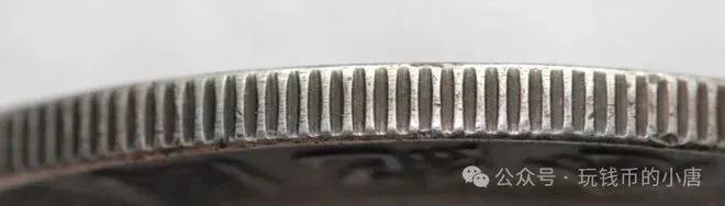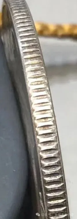 包浆一眼假,并且造总边齿也不是这种,给大家看看真假边齿对比。(第一张是上面假币造总的边齿,第二张是真币造总的边齿)