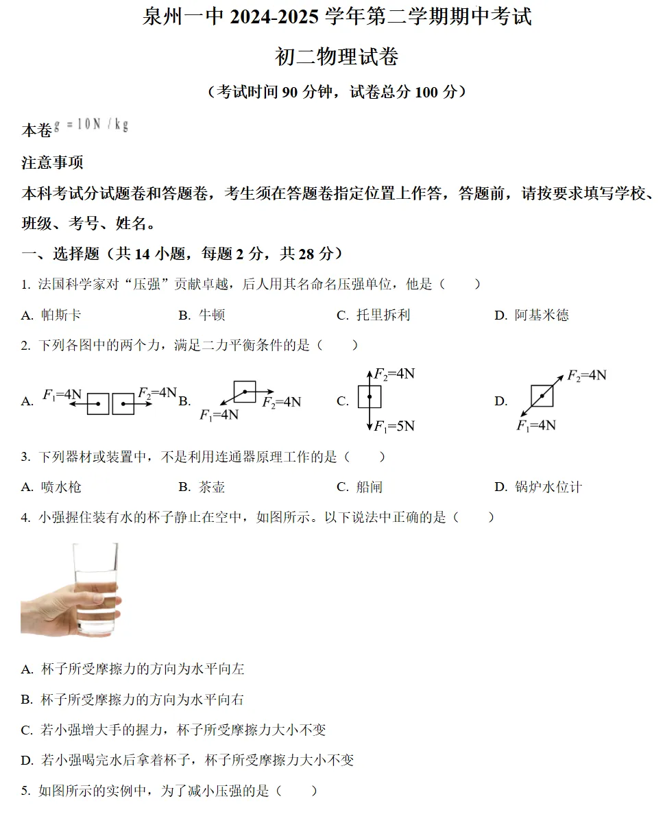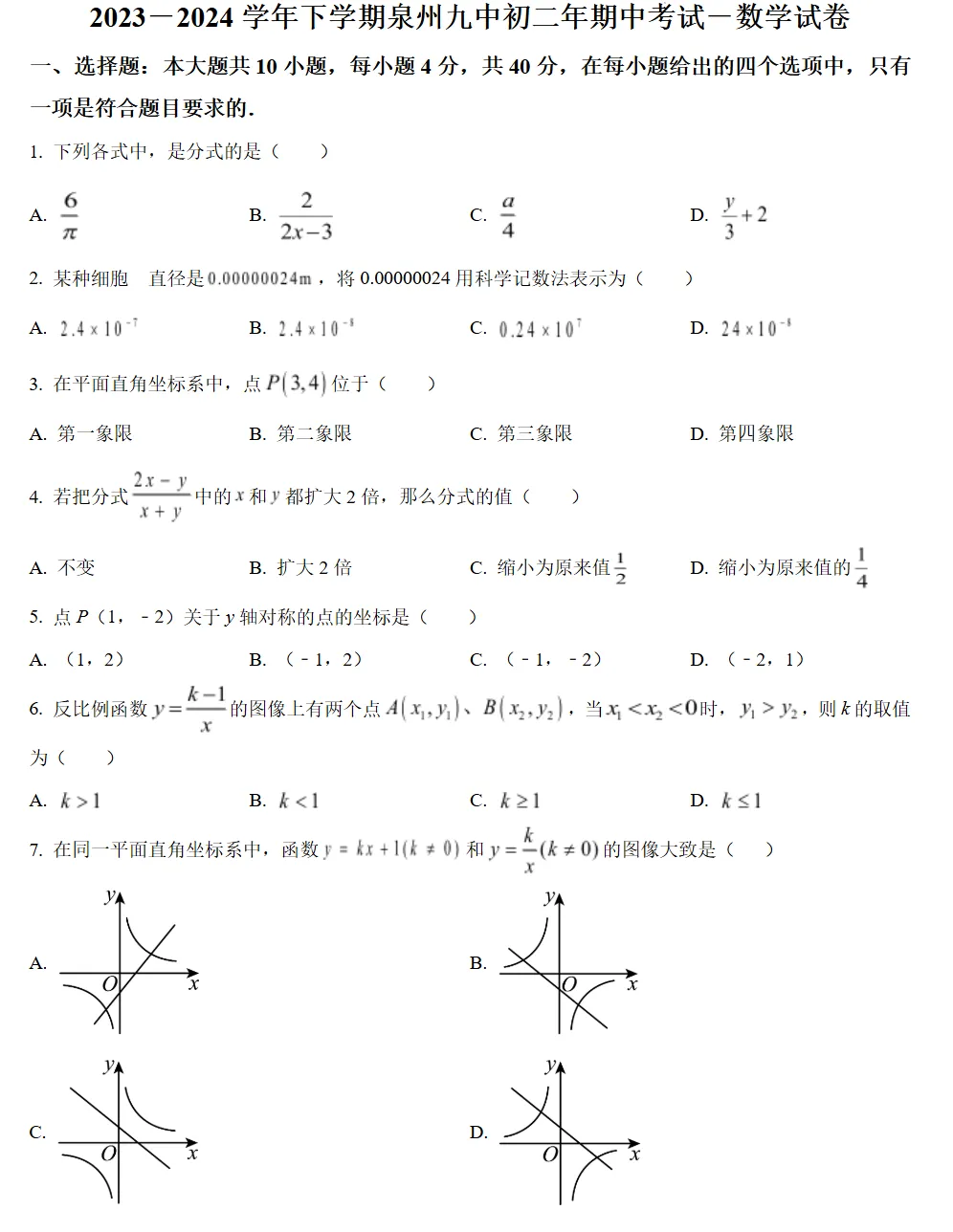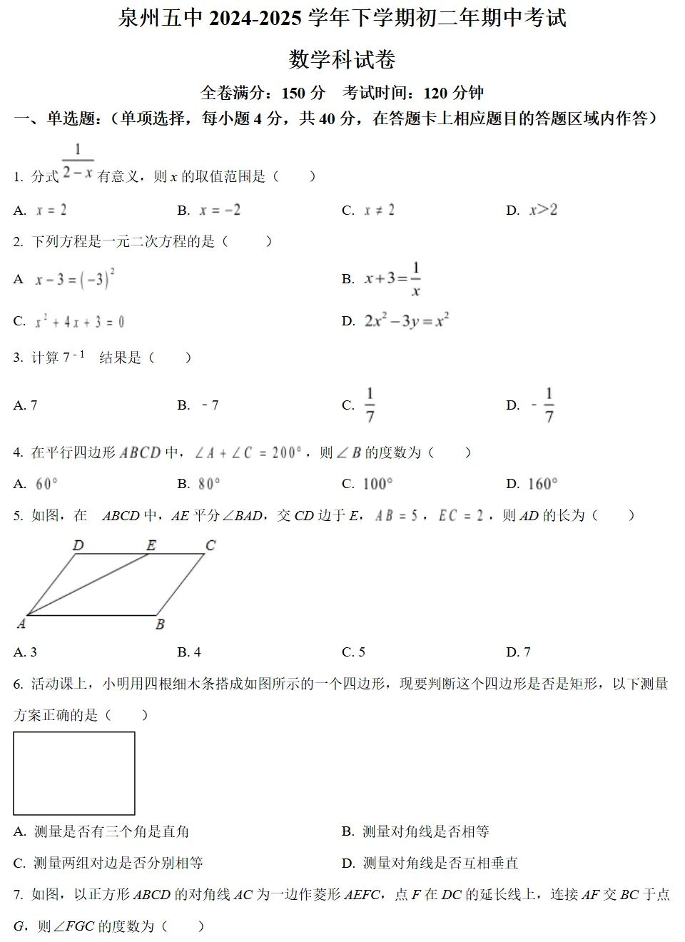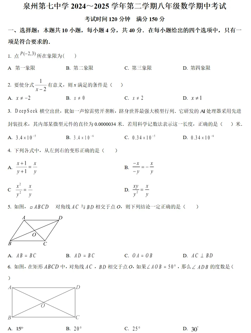 #晋江一中初一下学期期中考试卷#养正中学初一下学期期中考试卷#晋江陈埭江滨初一七校期中考真题答案#磁灶片区初一期中考试卷