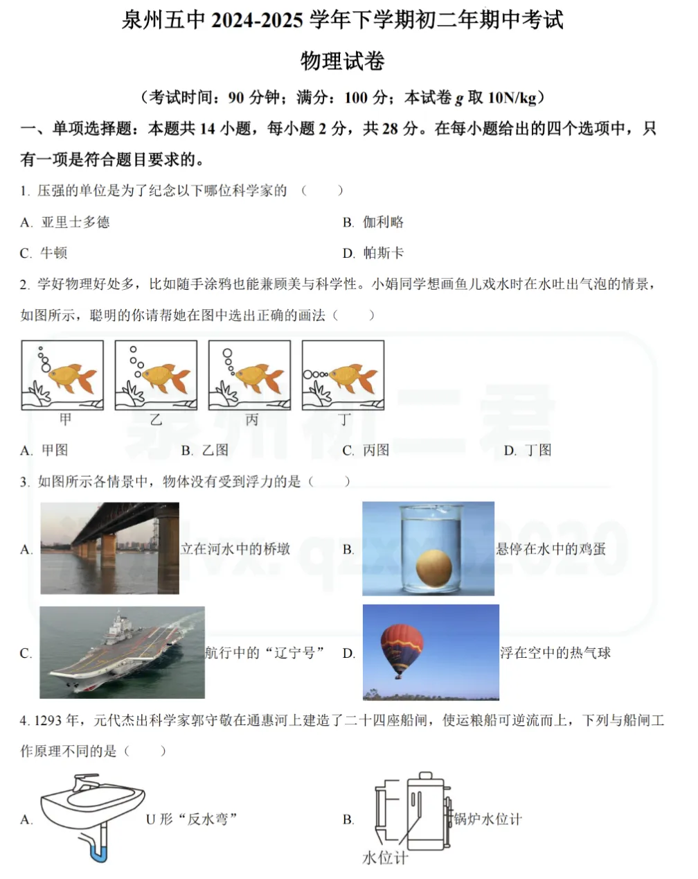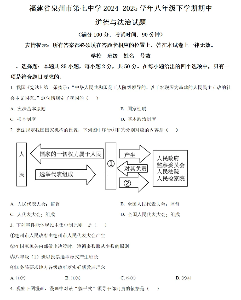 |丰泽、惠安、南安初二4月质检生物、地理试卷+答案!