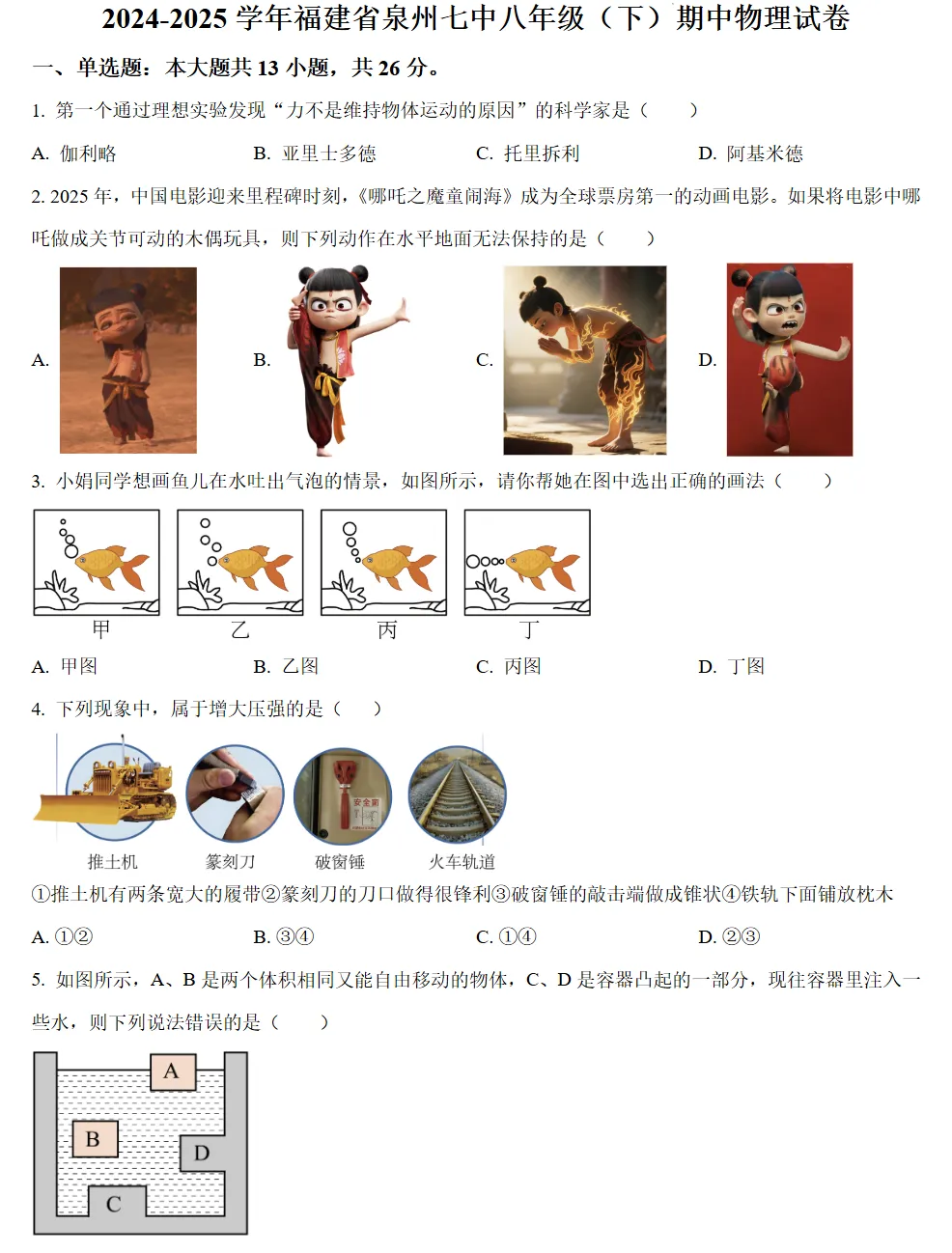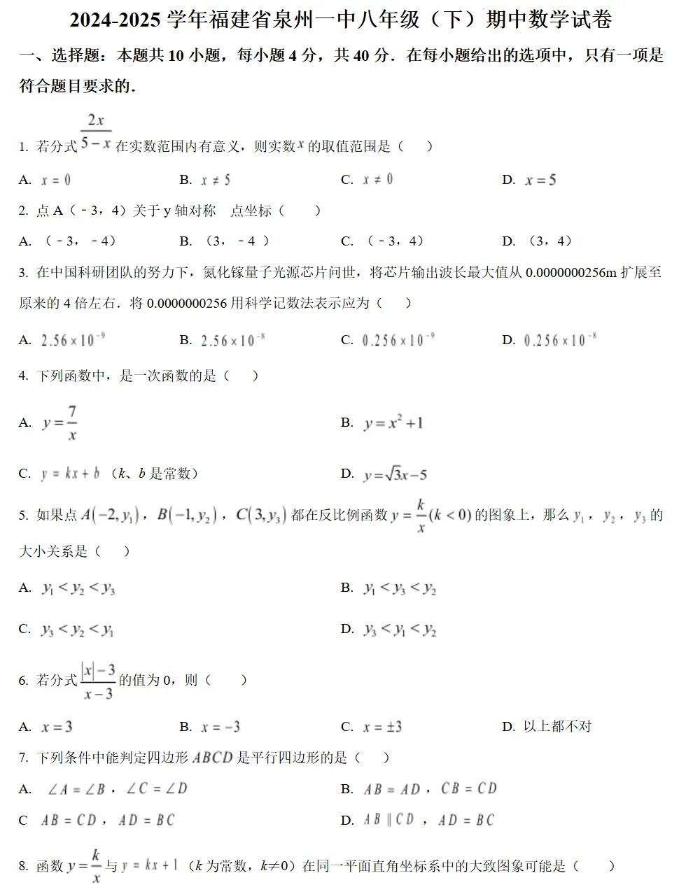|2021-2025福建中考10科真题&答案(含生物地理)!吃透真题