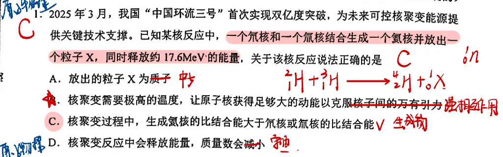 比结合能:生成物比结合能更大,核更稳定