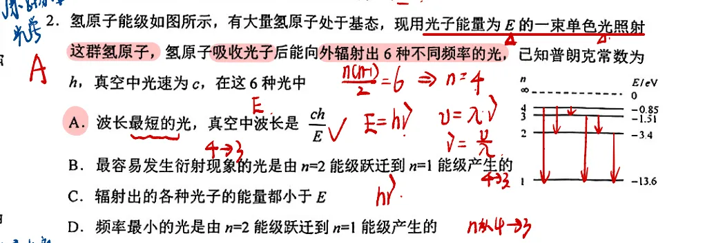 能级跃迁波长最长是能量差最小