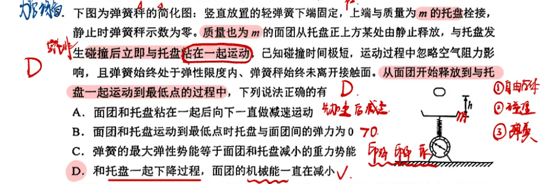 能量守恒:重力势能减少量 = 弹性势能增加量
