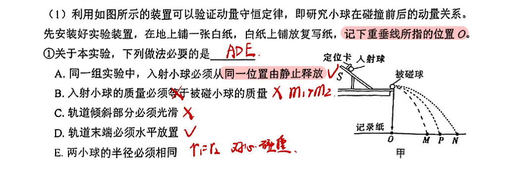 验证动量守恒:等高、共线、水平、同一高度释放