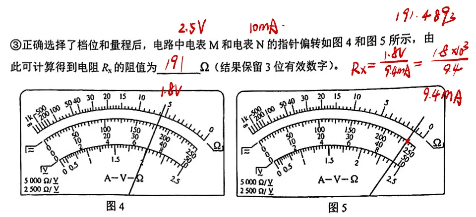 欧姆表读数:倍率 × 指针