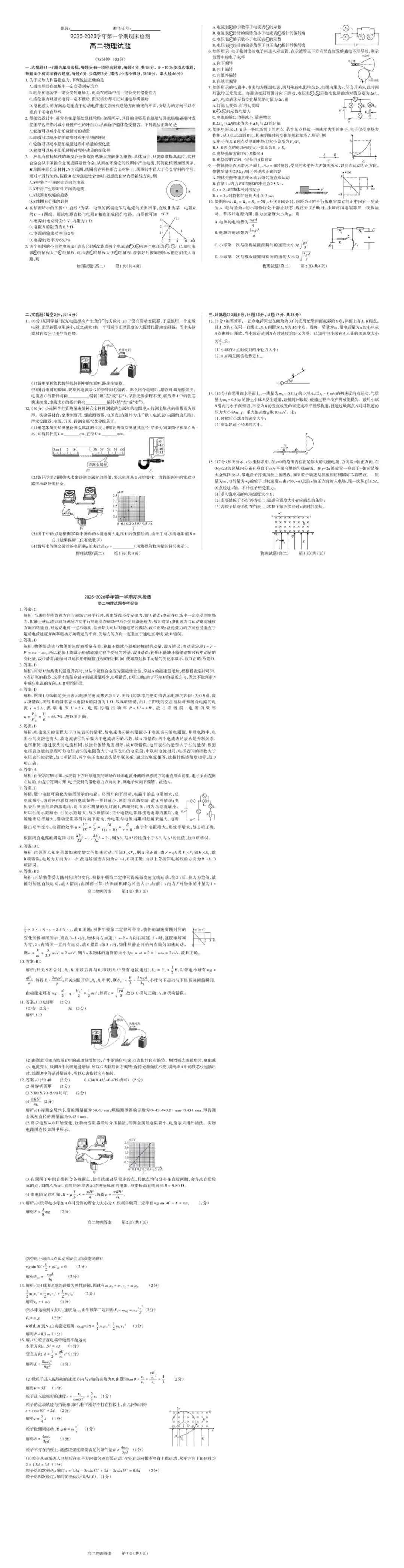 >《高中试卷》山西省大同市2025-2026学年高二上学期期末物理(含答案)