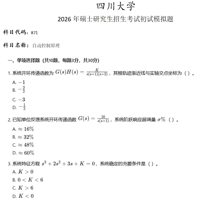 重庆大学考研专业课历年真题汇总(含2026真题)
