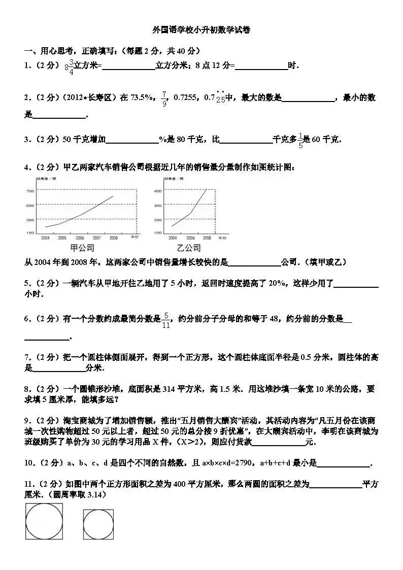 重点中学内部流出!小升初数学10套模拟试卷,考前刷完不丢分!