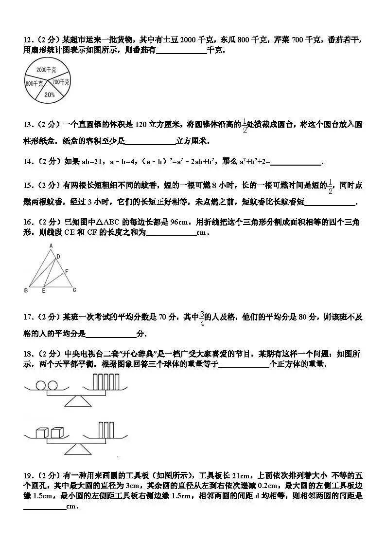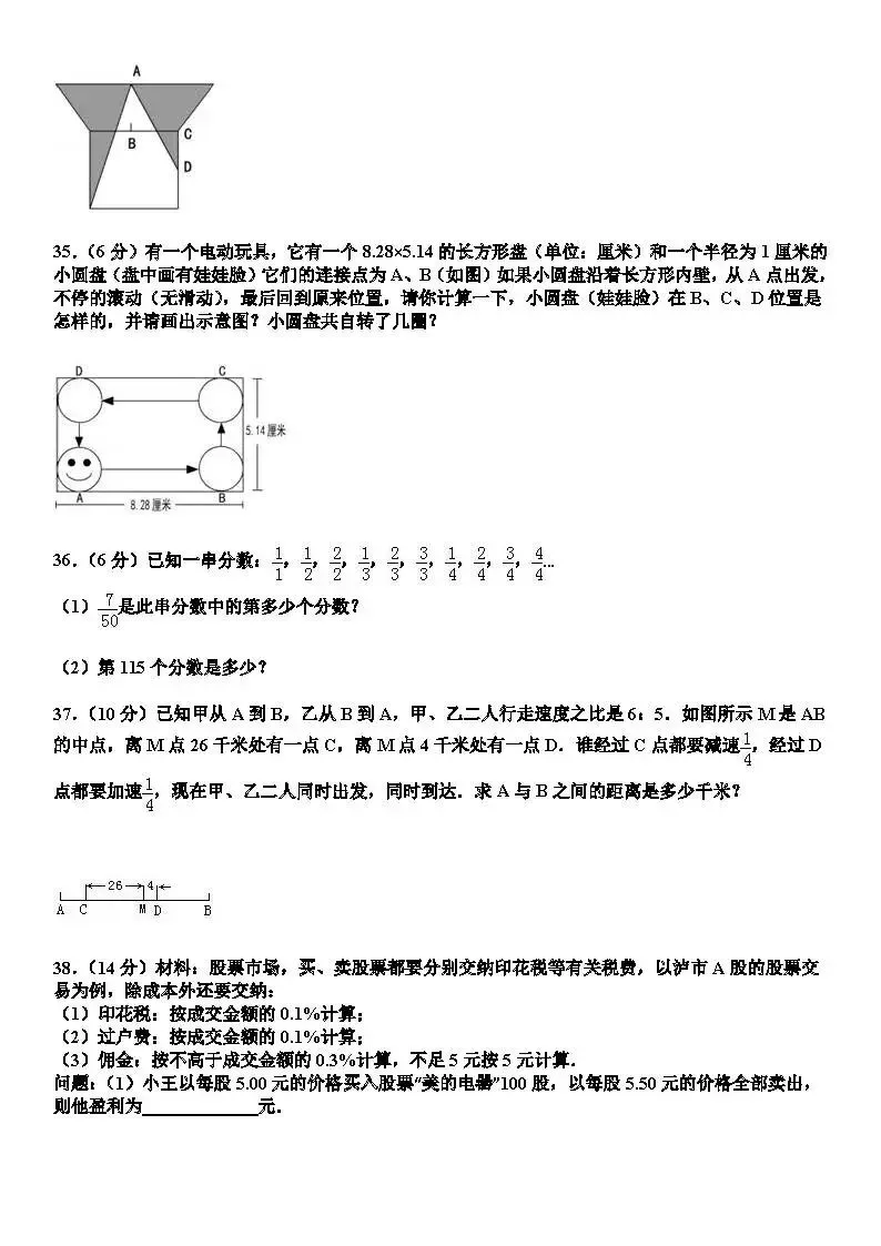 上海市杨浦区六年级数学期中试卷及答案(2026.4)