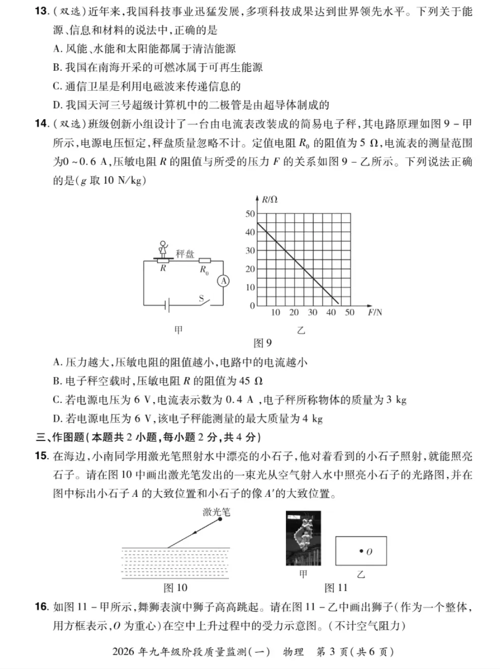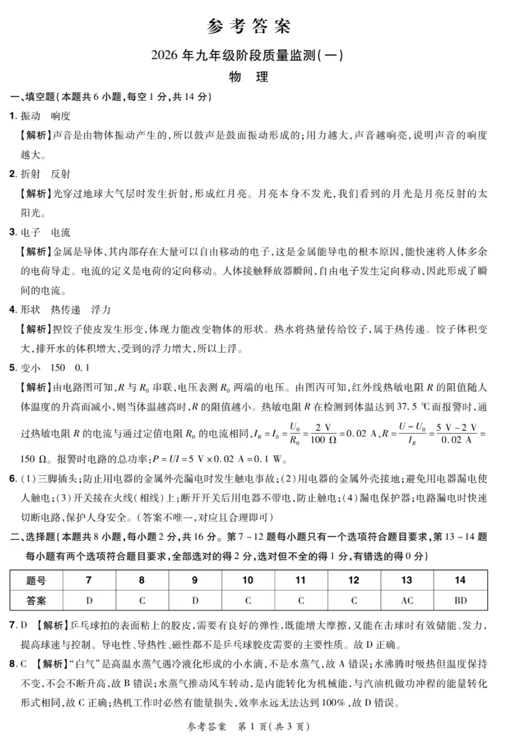 《高中试卷》天津市南开区2026届高三下学期质量监测(一)物理(含答案)