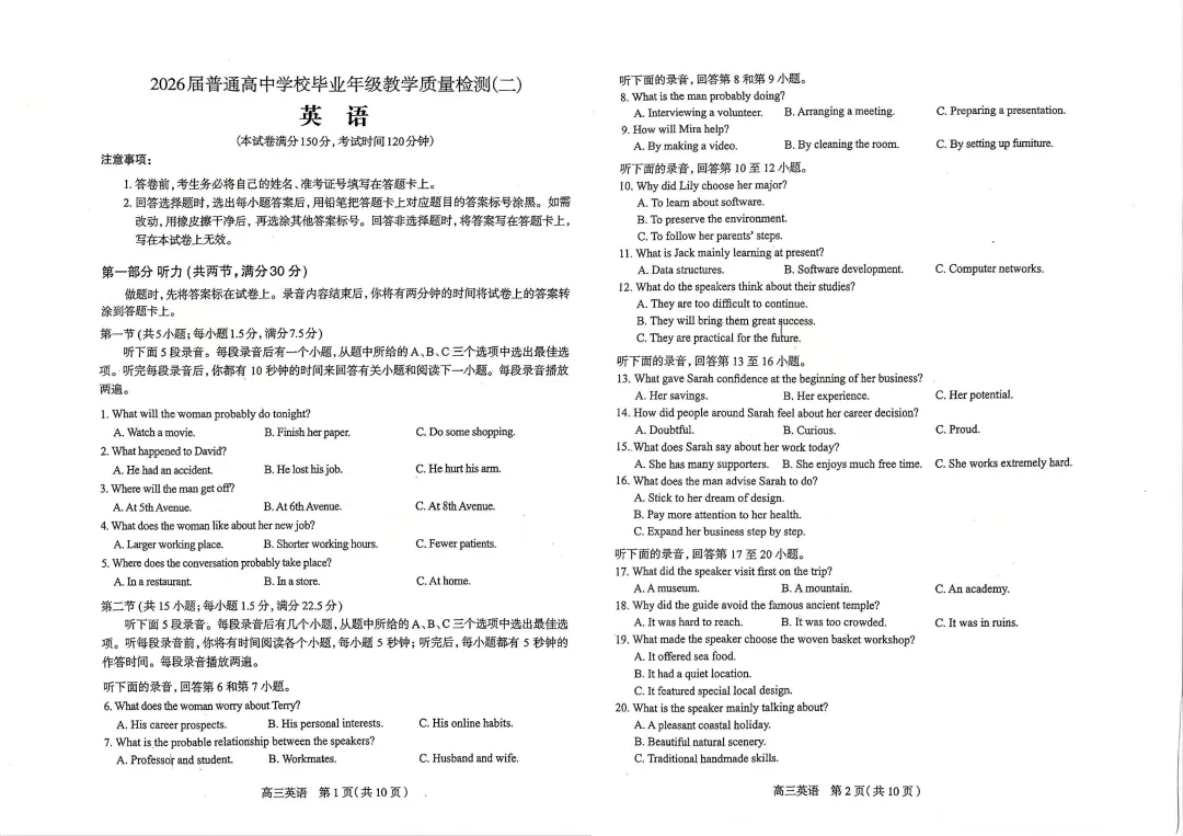 2026 年 4 月 22—24 日,石家庄市高三二模(全市教学质量检测二)顺利开考,数学、物理、英语、化学四科试卷已全部出炉。作为高考前最关键的全真模拟,本次二模严格对标河北新高考命题风格,题型、难度、分值与高考高度一致,是检验二轮复习成效、定位知识短板、优化应试策略的 “黄金标尺”。